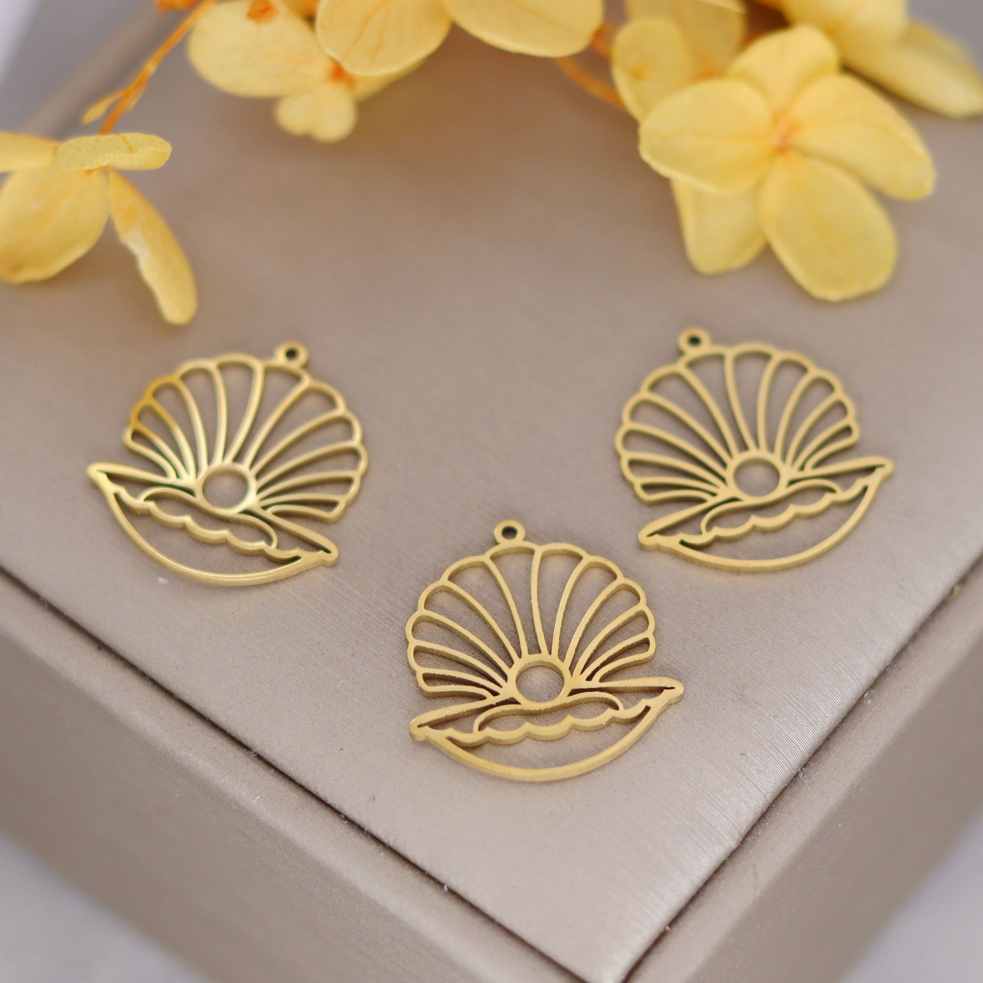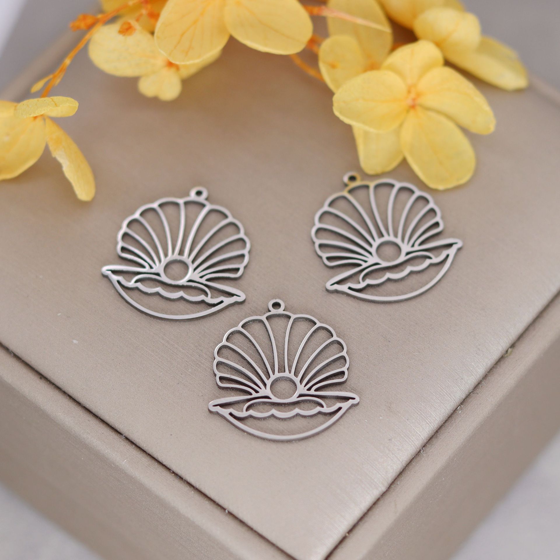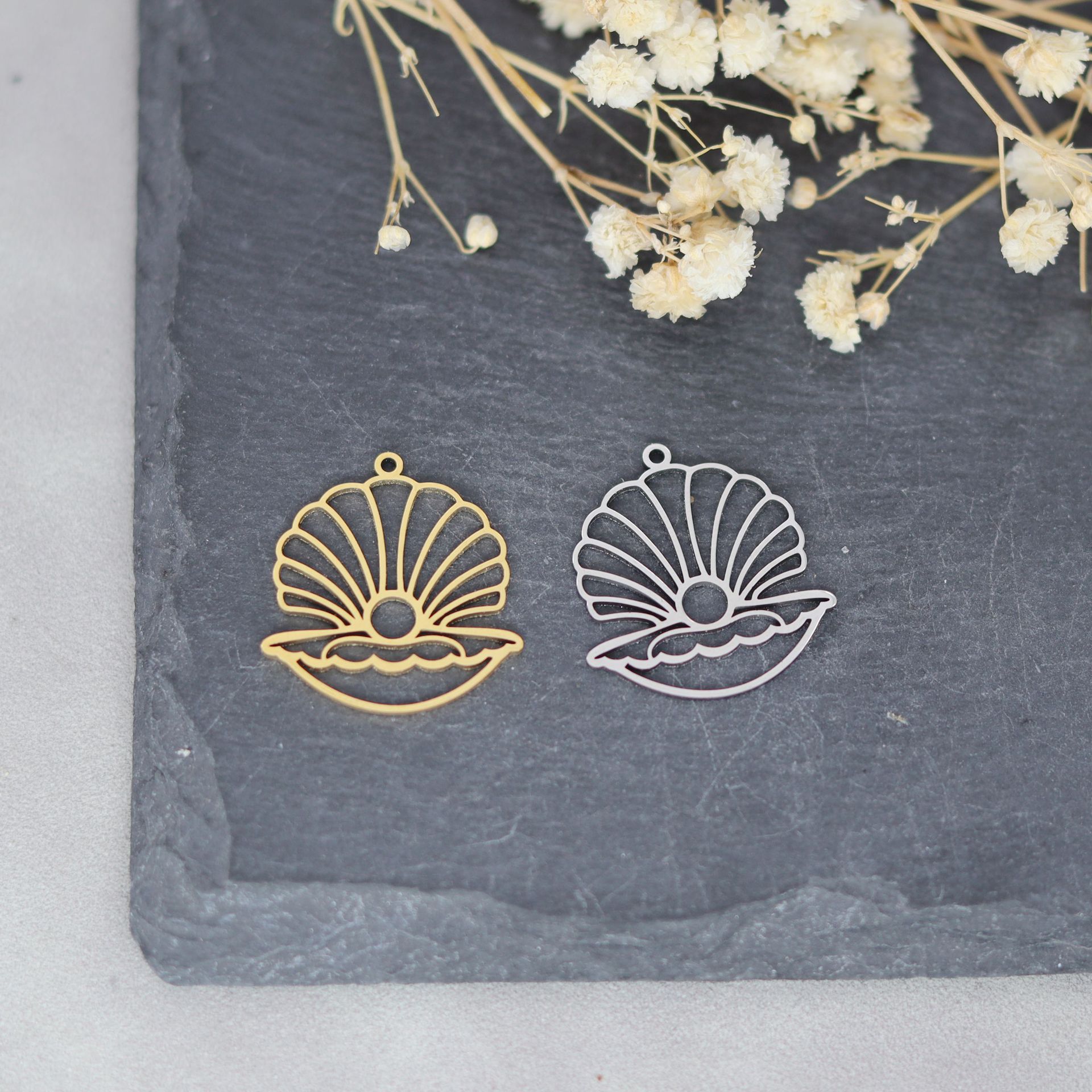 Pendentifs d'animaux en acier inoxydable , Acier inoxydable 304, coquille, Placage, DIY & creux, plus de couleurs à choisir, Vendu par PC