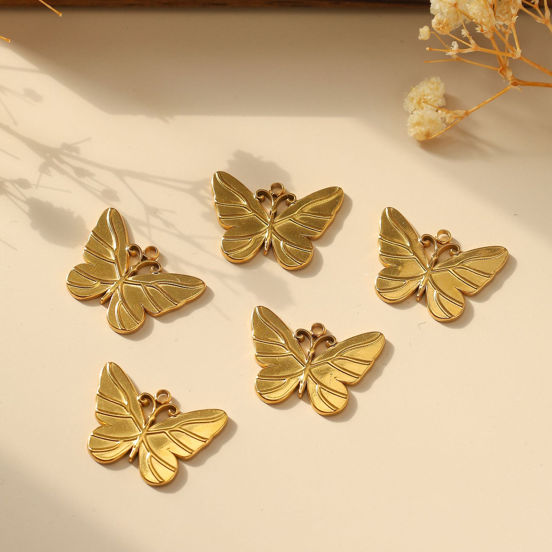 Pendentifs d'animaux en acier inoxydable , Acier inoxydable 304, papillon, Placage ionique sous vide, DIY, plus de couleurs à choisir, 24x17mm, 10PC/sac, Vendu par sac