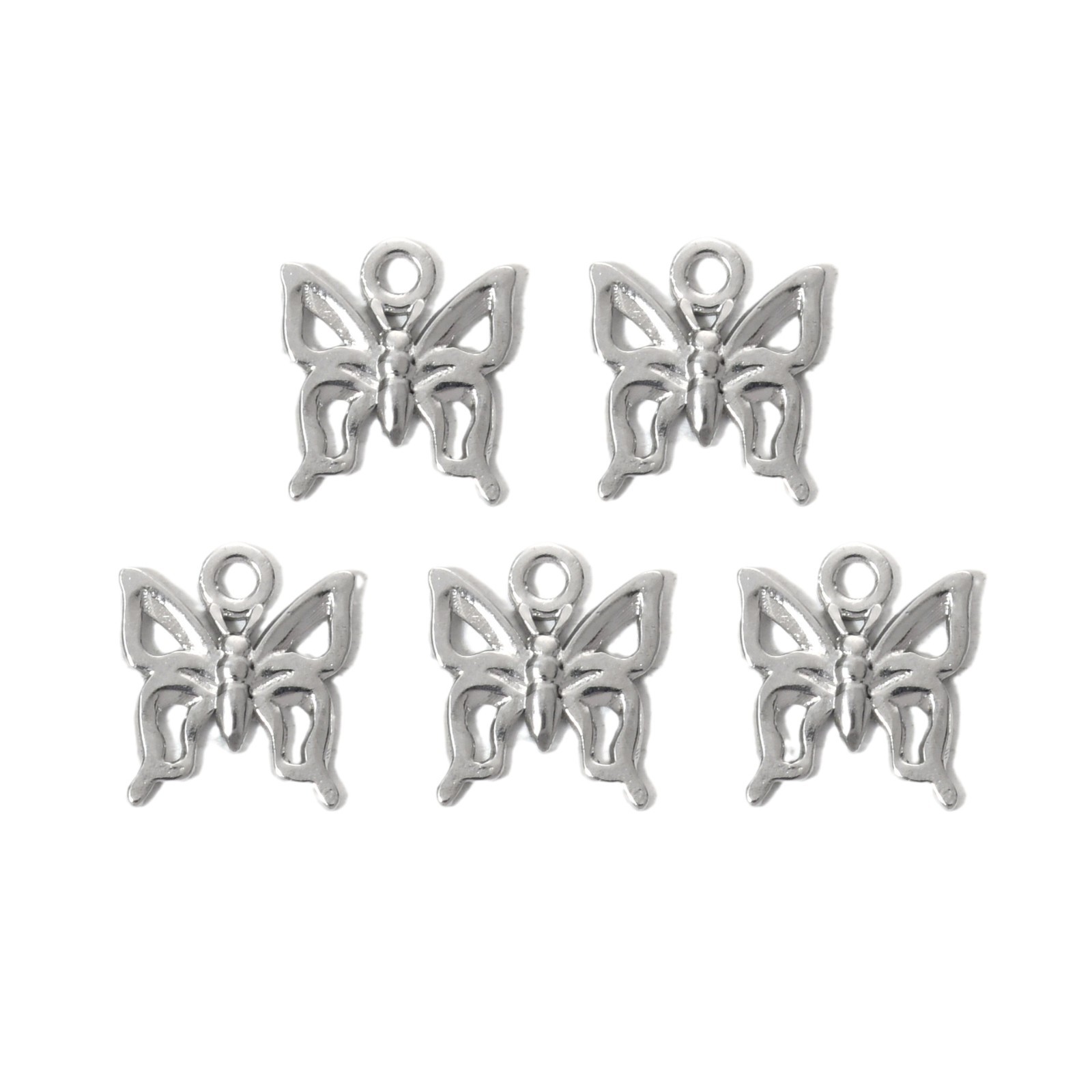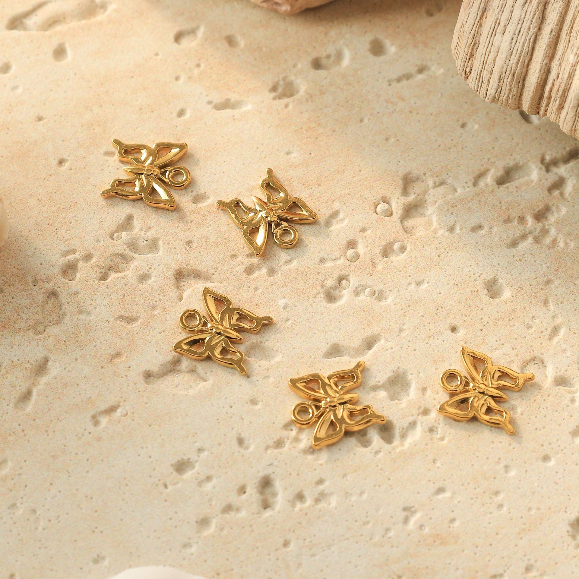 Pendentifs d'animaux en acier inoxydable , Acier inoxydable 304, papillon, Placage ionique sous vide, DIY & creux, plus de couleurs à choisir, 9x11mm, 10PC/sac, Vendu par sac