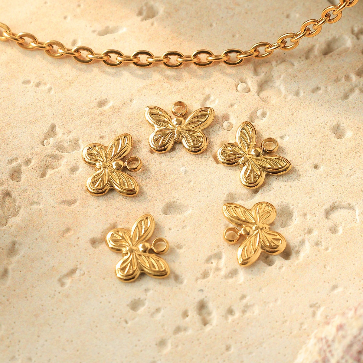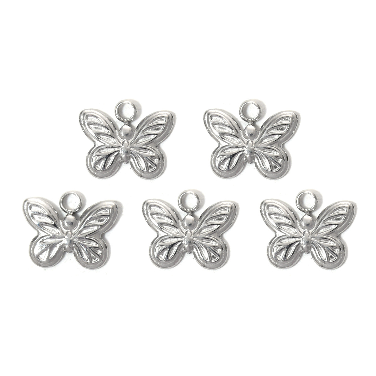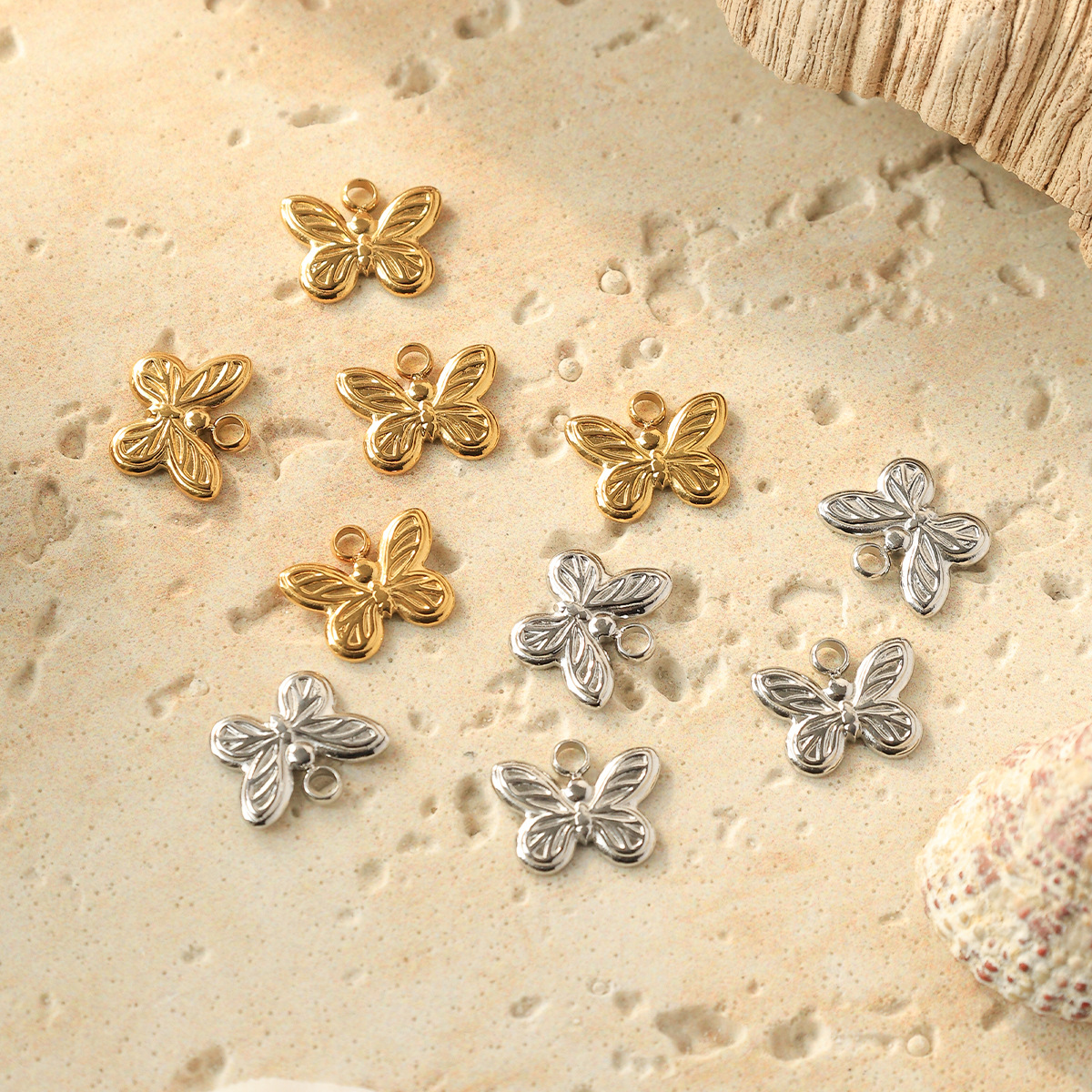 Pendentifs d'animaux en acier inoxydable , Acier inoxydable 304, papillon, Placage ionique sous vide, DIY, plus de couleurs à choisir, 12x10mm, 10PC/sac, Vendu par sac