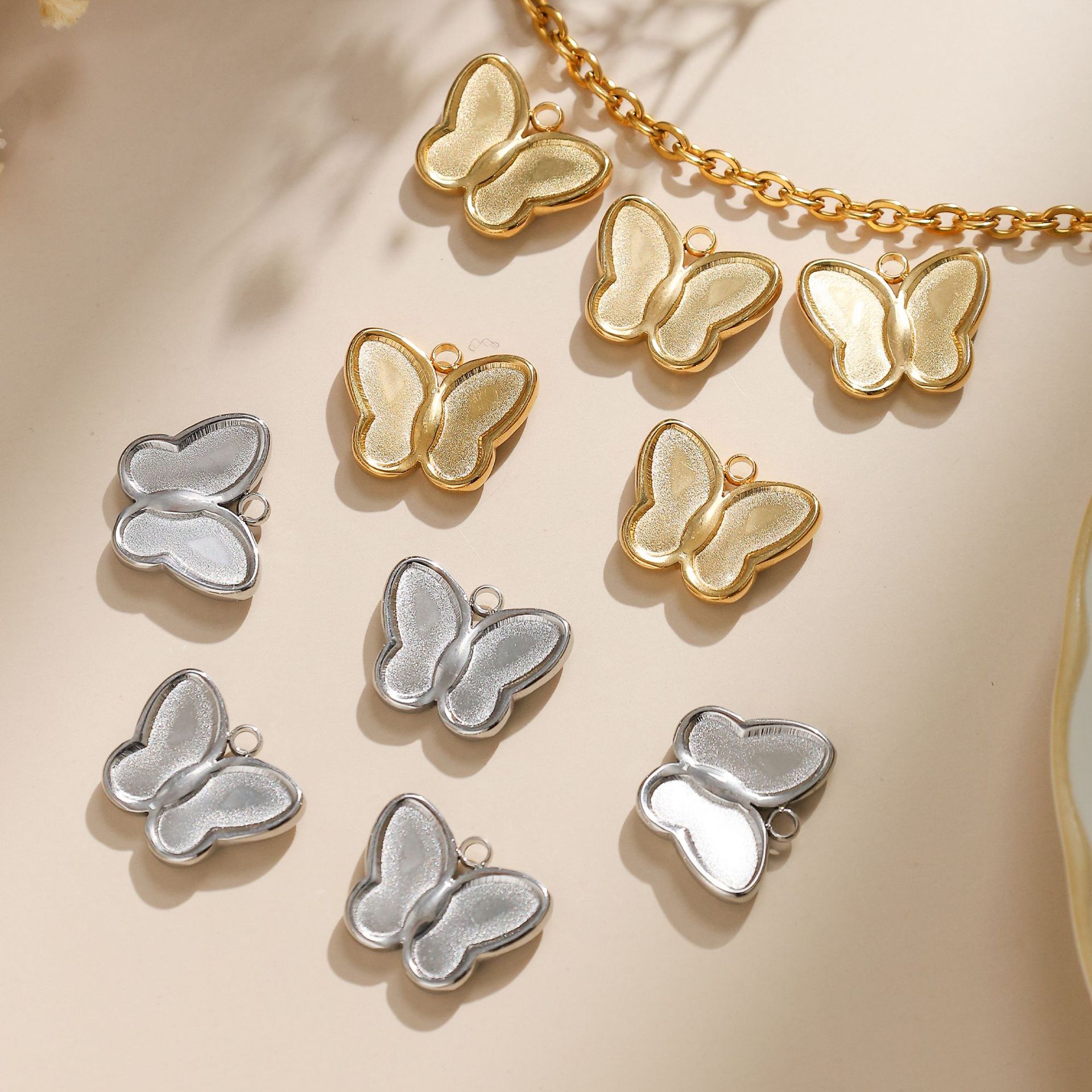 Pendentifs d'animaux en acier inoxydable , Acier inoxydable 304, papillon, Placage ionique sous vide, DIY, plus de couleurs à choisir, 17x13mm, 10PC/sac, Vendu par sac