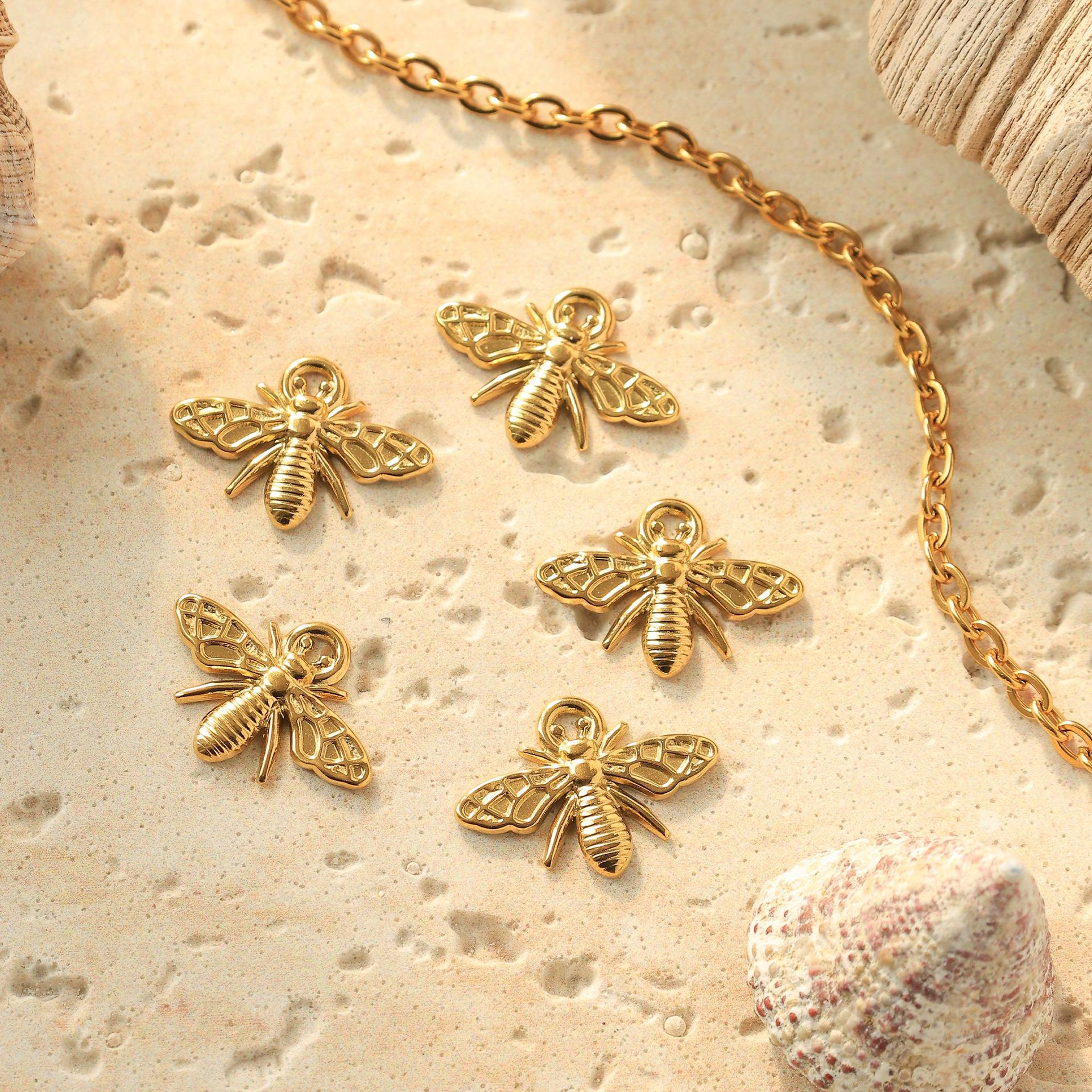 Pendentifs d'animaux en acier inoxydable , Acier inoxydable 304, abeille, Placage ionique sous vide, DIY, plus de couleurs à choisir, 20x18mm, 10PC/sac, Vendu par sac