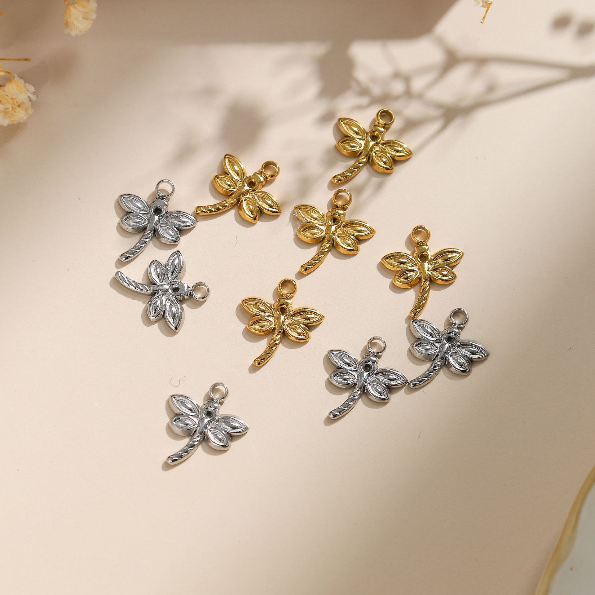 Pendentifs d'animaux en acier inoxydable , Acier inoxydable 304, libellule, Placage, DIY, plus de couleurs à choisir, 10PC/sac, Vendu par sac