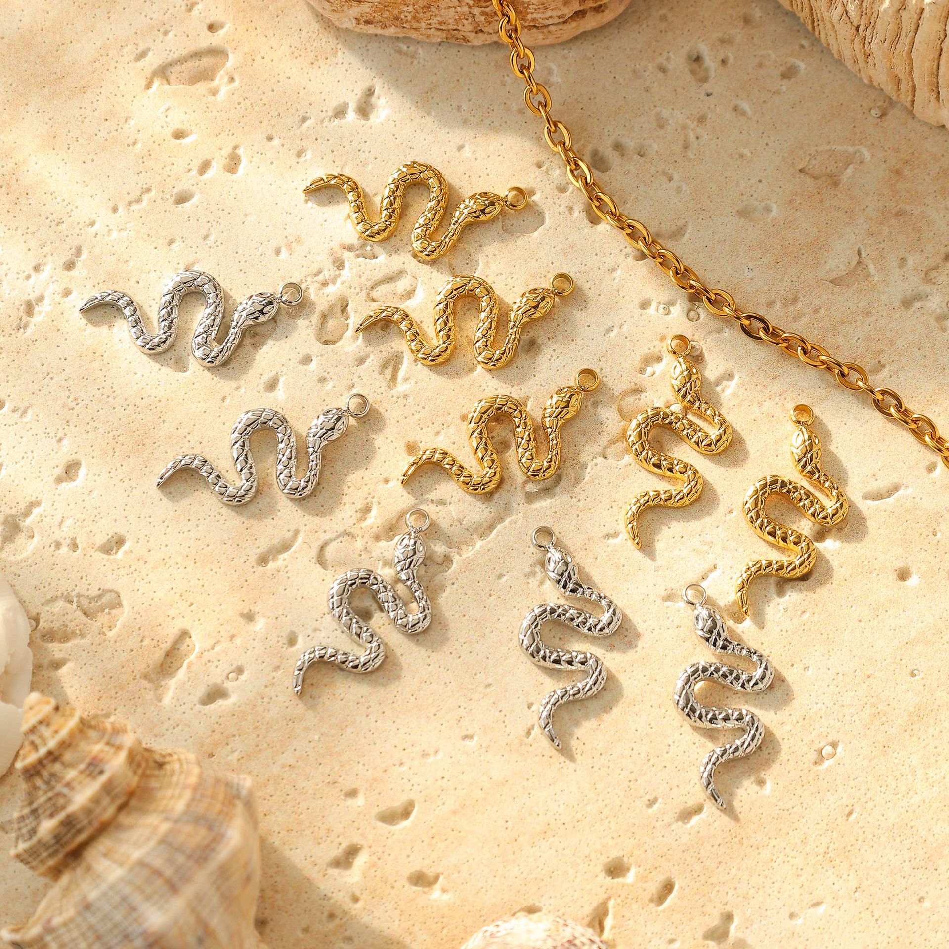 Pendentifs d'animaux en acier inoxydable , Acier inoxydable 304, serpent, Placage ionique sous vide, DIY, plus de couleurs à choisir, 13x21mm, 10PC/sac, Vendu par sac