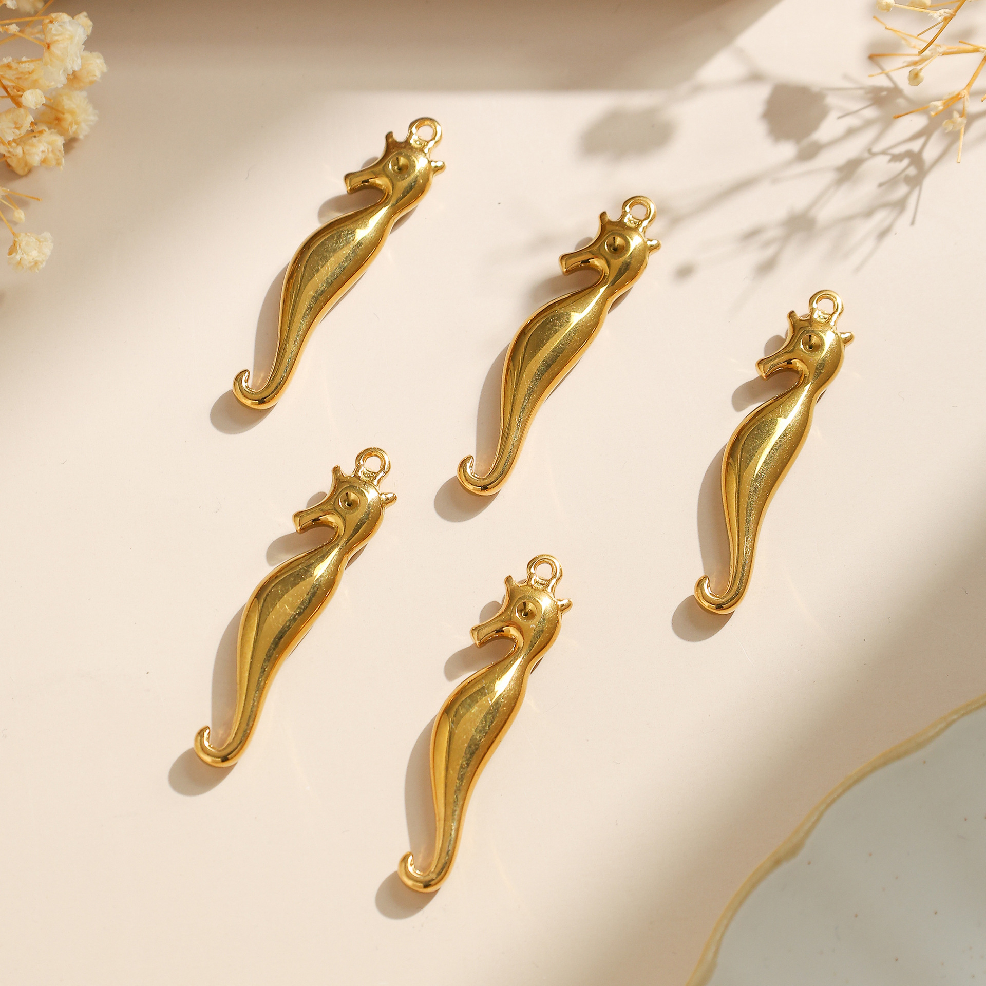 Pendentifs d'animaux en acier inoxydable , Acier inoxydable 304, hippocampe, Placage, DIY, plus de couleurs à choisir, 10PC/sac, Vendu par sac