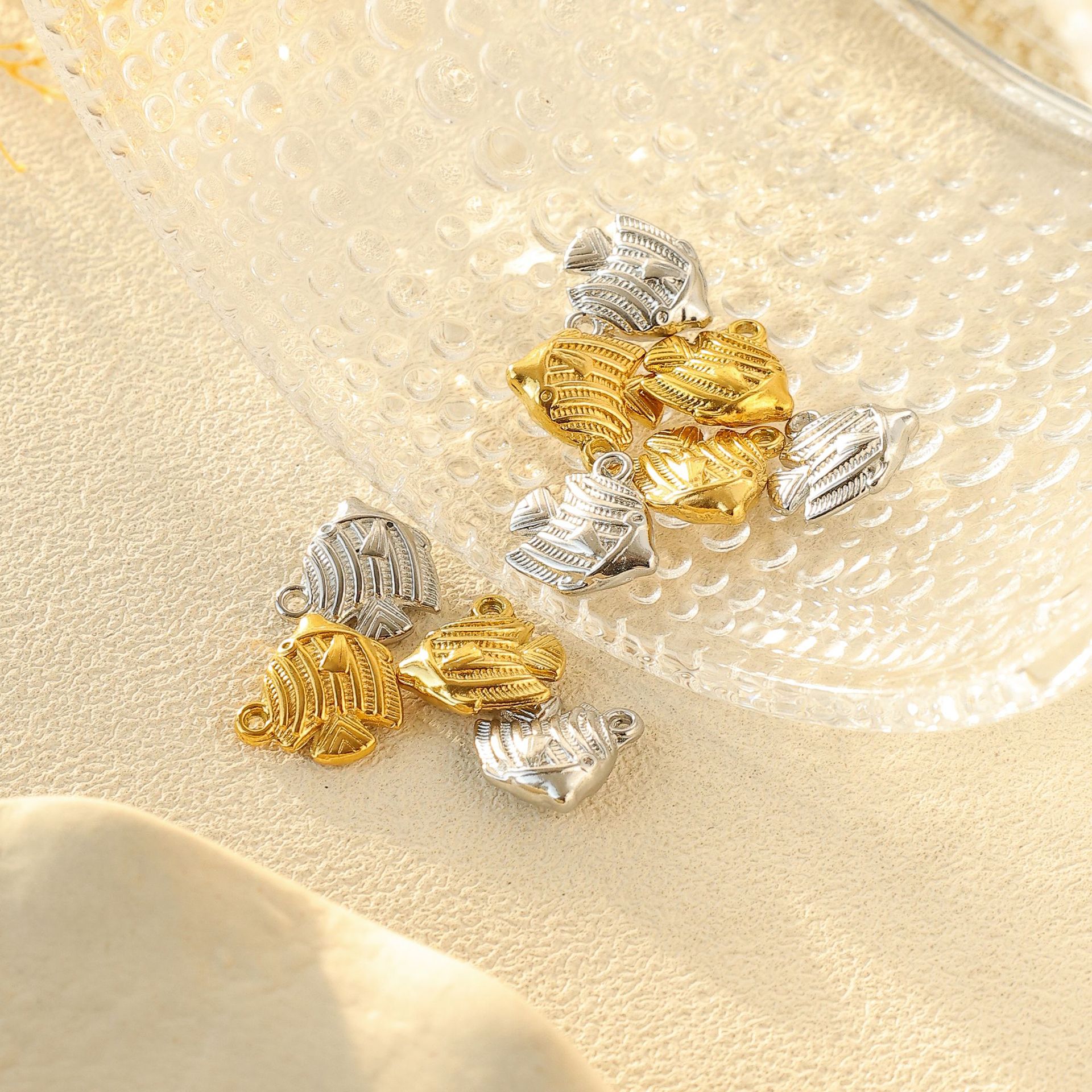 Pendentifs d'animaux en acier inoxydable , Acier inoxydable 304, poisson, Placage ionique sous vide, DIY, plus de couleurs à choisir, 12x12mm, 50PC/sac, Vendu par sac