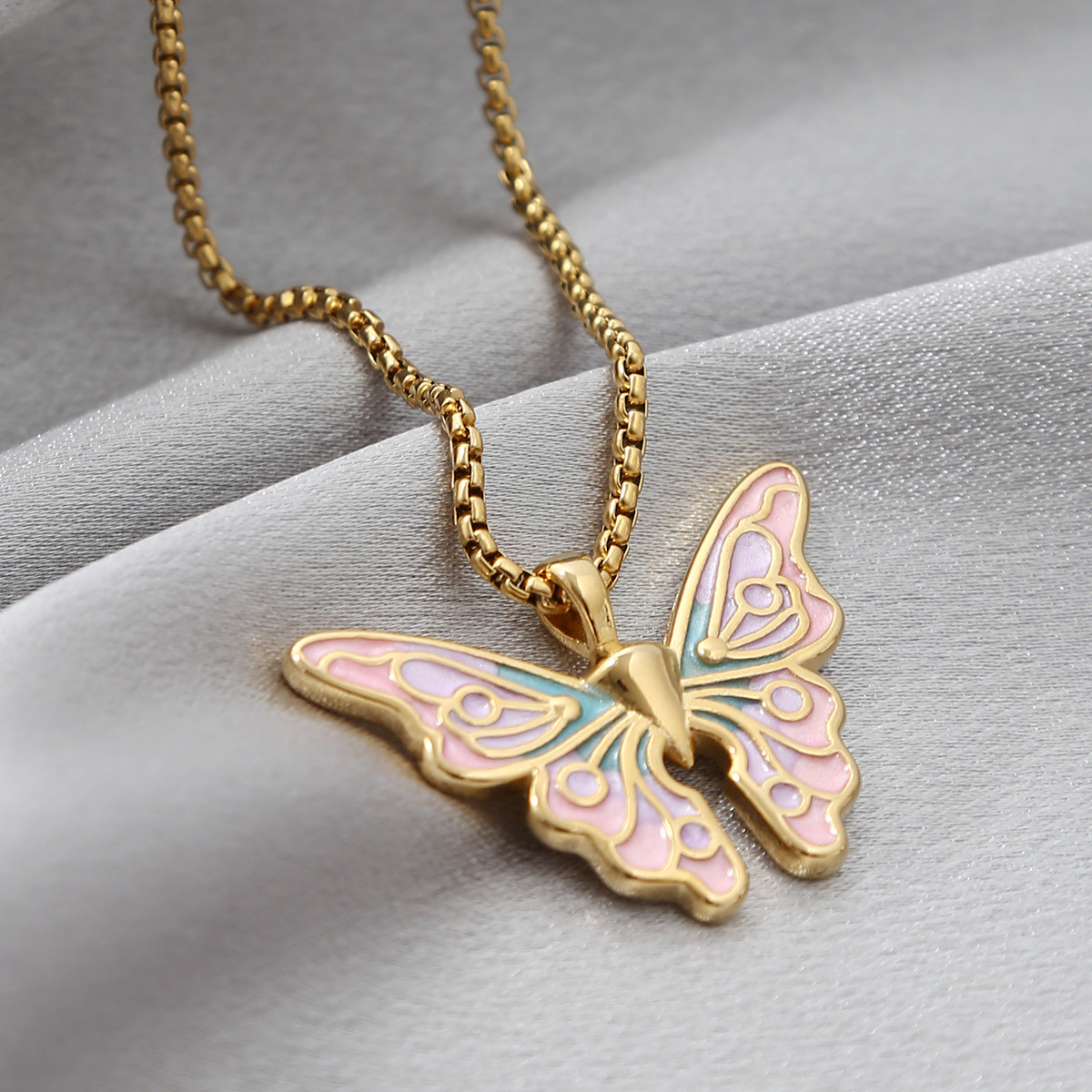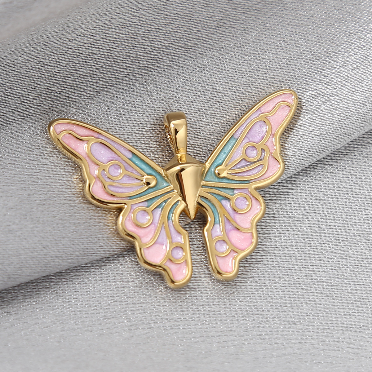 Pendentifs d'animaux en acier inoxydable , Acier inoxydable 304, papillon, Placage de couleur d'or, DIY & émail, doré, 35x25mm, 10PC/sac, Vendu par sac