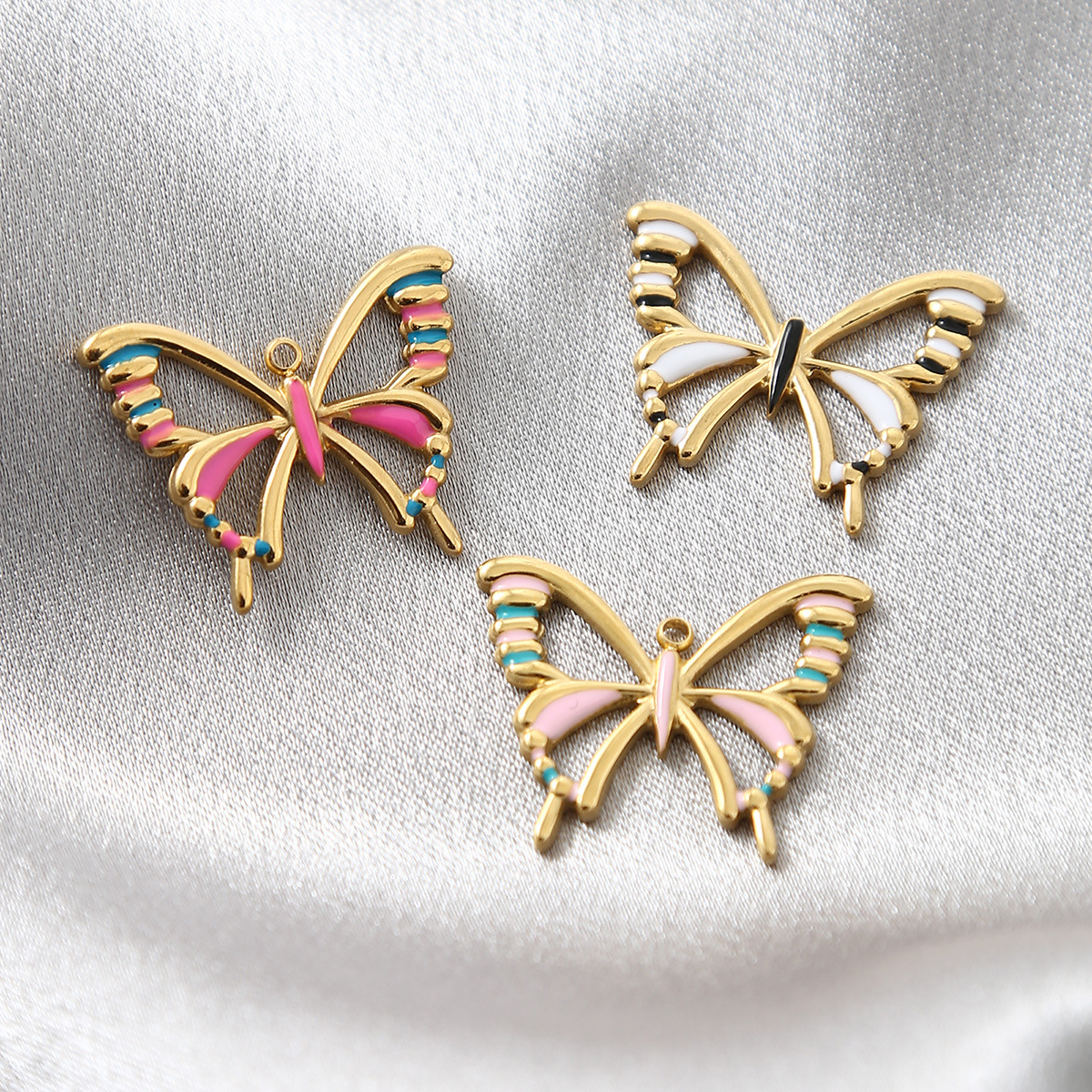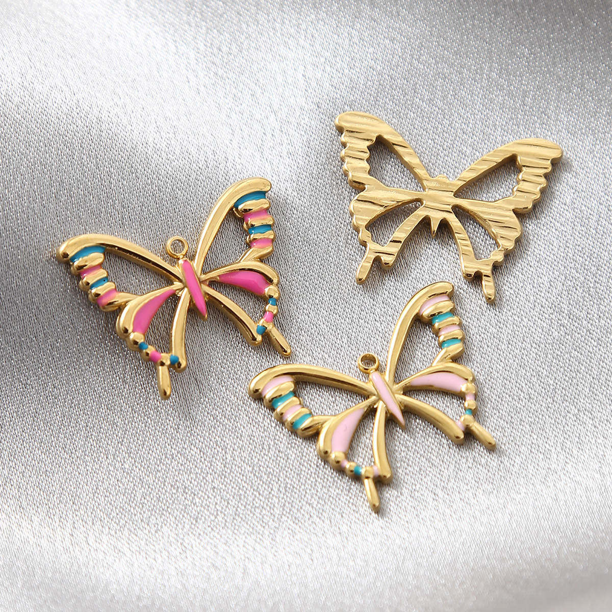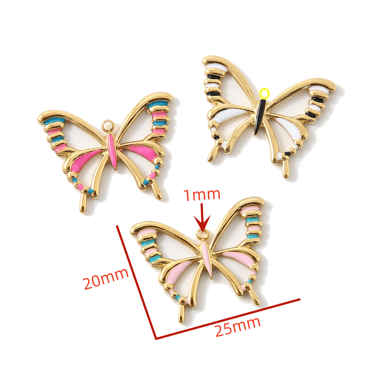 Pendentifs d'animaux en acier inoxydable , Acier inoxydable 304, papillon, Placage de couleur d'or, DIY & émail, plus de couleurs à choisir, 25x20mm, 10PC/sac, Vendu par sac