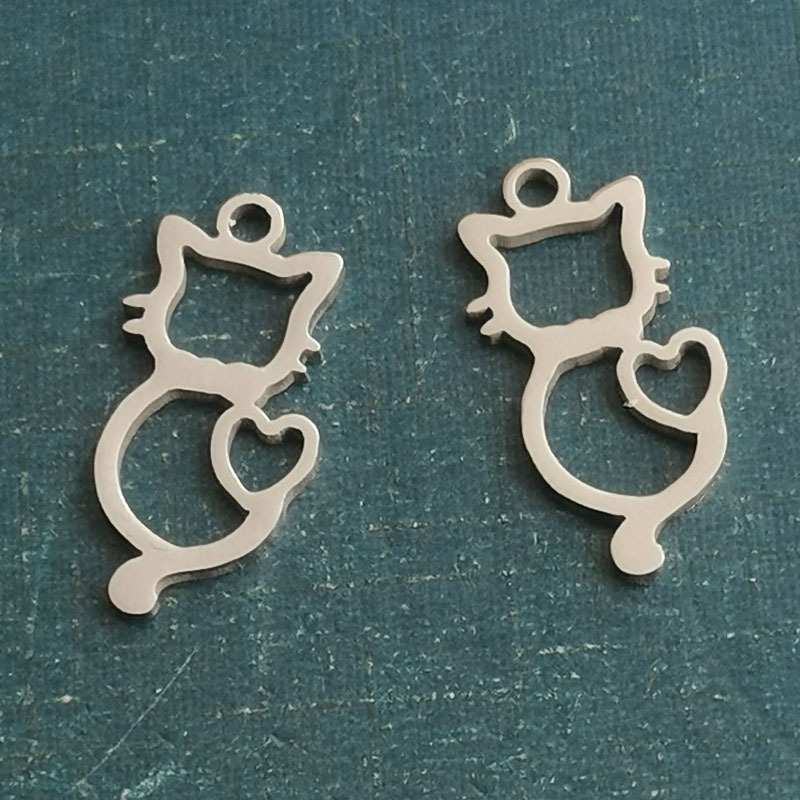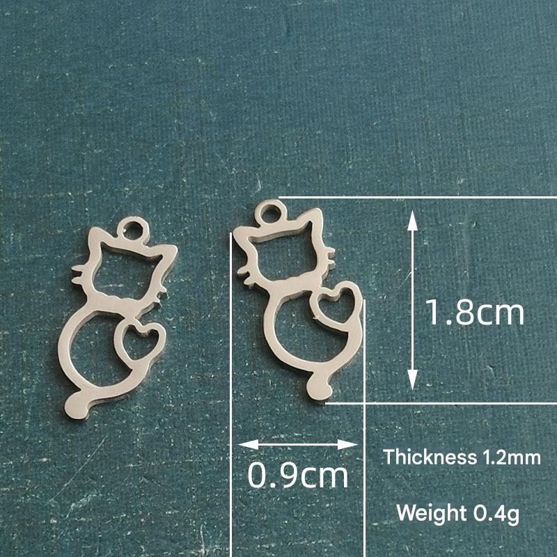 Pendentifs d'animaux en acier inoxydable , Acier inoxydable 304, chat, Placage ionique sous vide, DIY, plus de couleurs à choisir, 9x18x1.2mm, 10PC/sac, Vendu par sac