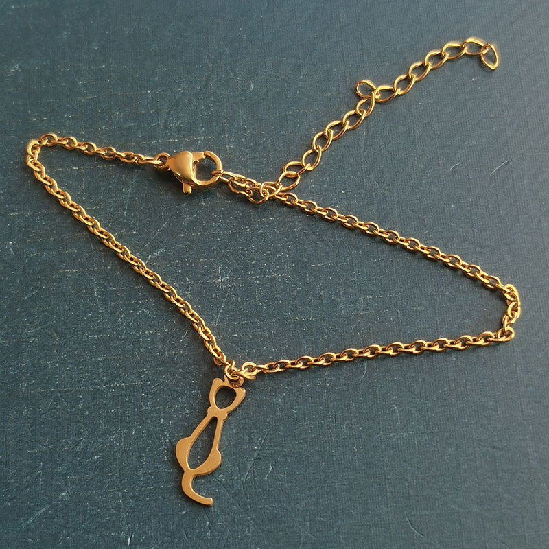 Pendentifs d'animaux en acier inoxydable , Acier inoxydable 304, chat, Placage ionique sous vide, DIY, plus de couleurs à choisir, 6x19x1.2mm, 10PC/sac, Vendu par sac