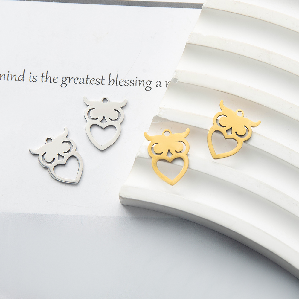 Pendentifs d'animaux en acier inoxydable , Acier inoxydable 304, hibou, Placage, DIY, plus de couleurs à choisir, 12.9x0.93x16.3mm, Vendu par PC