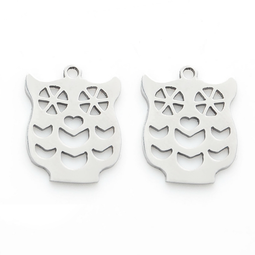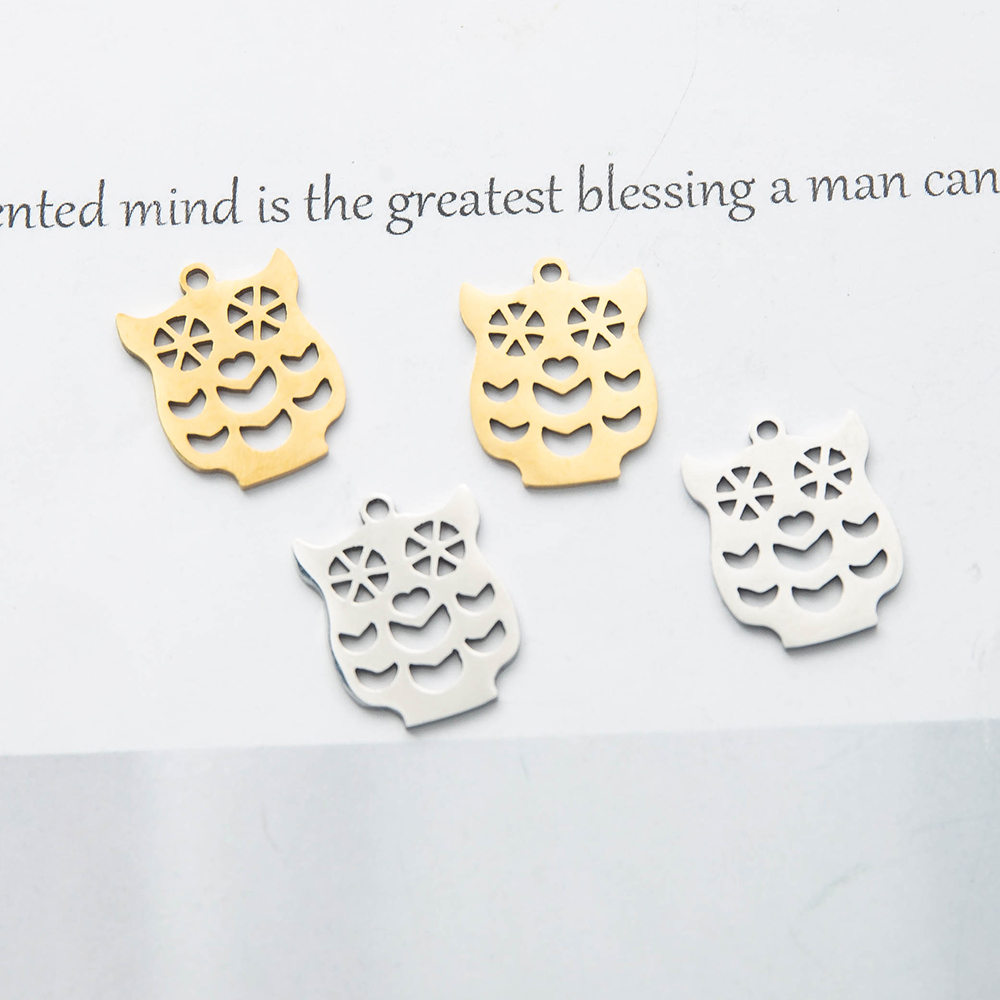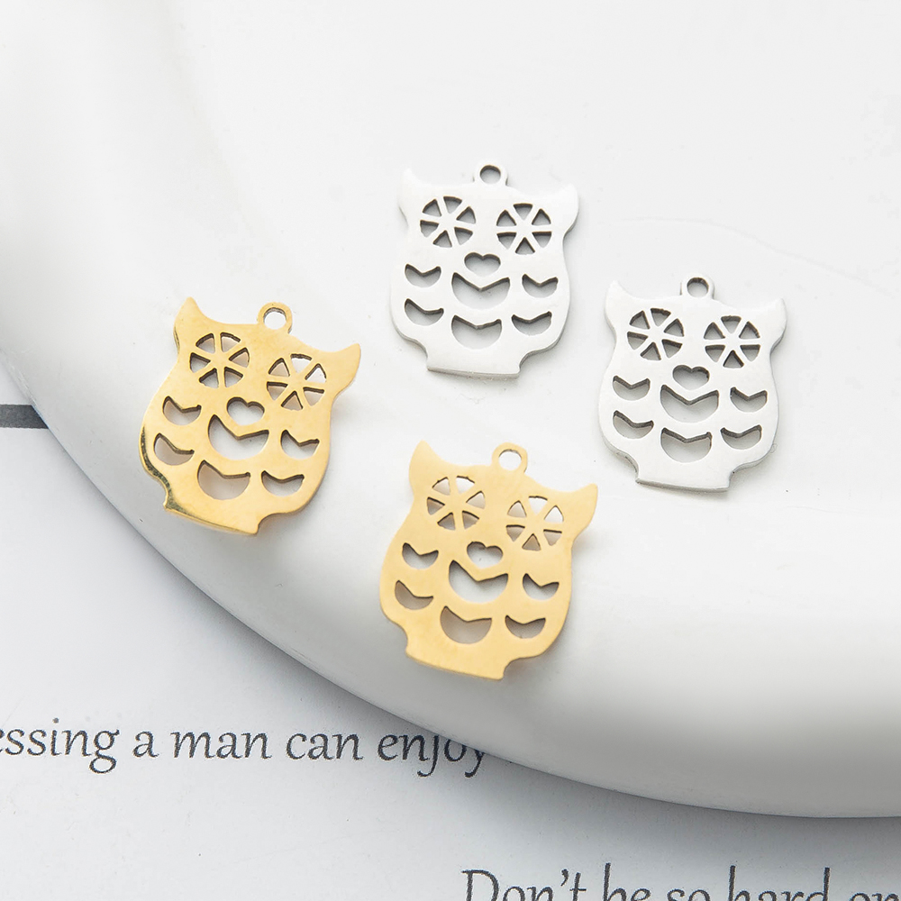 Pendentifs d'animaux en acier inoxydable , Acier inoxydable 304, hibou, Placage, DIY, plus de couleurs à choisir, 13.56x0.93x12.27mm, Vendu par PC