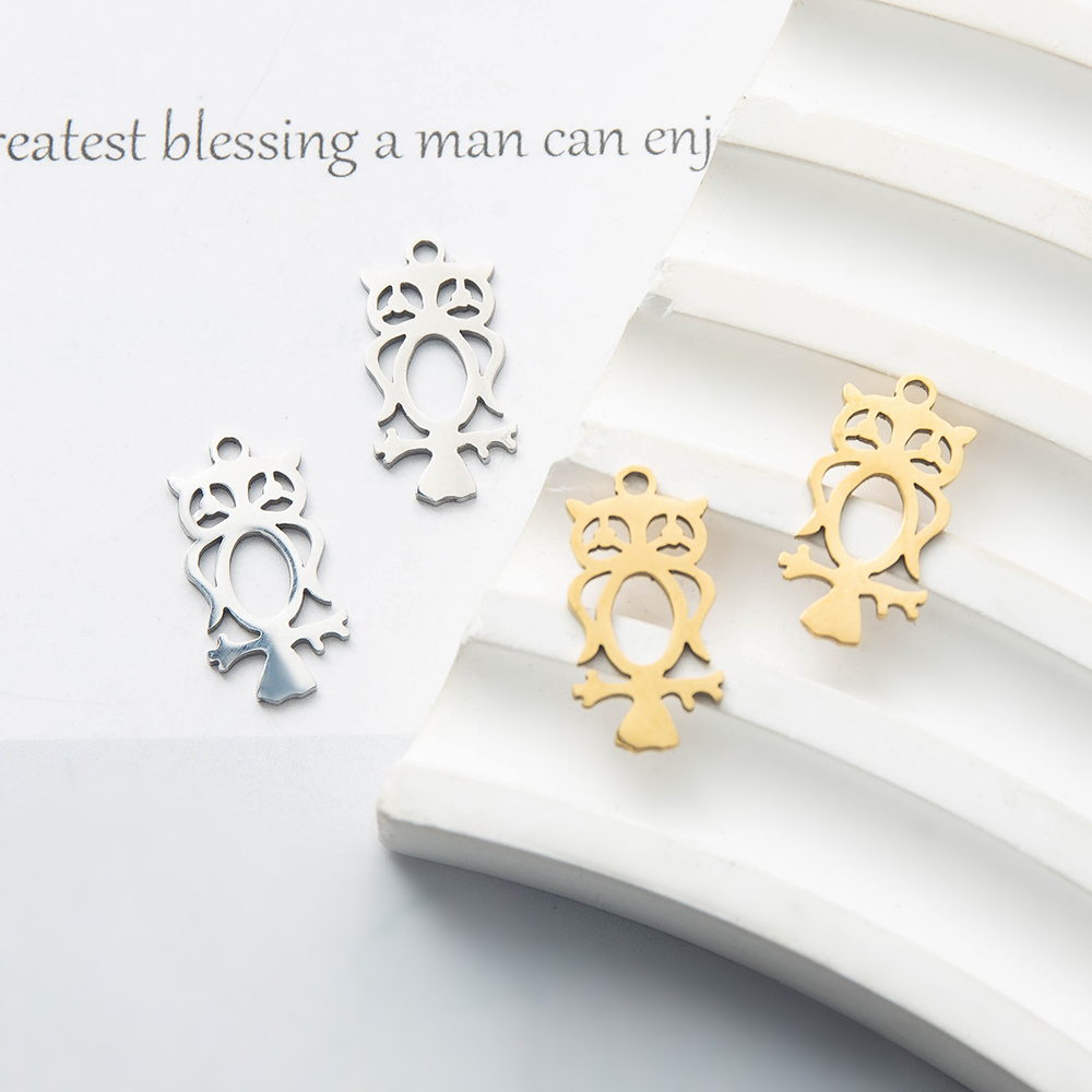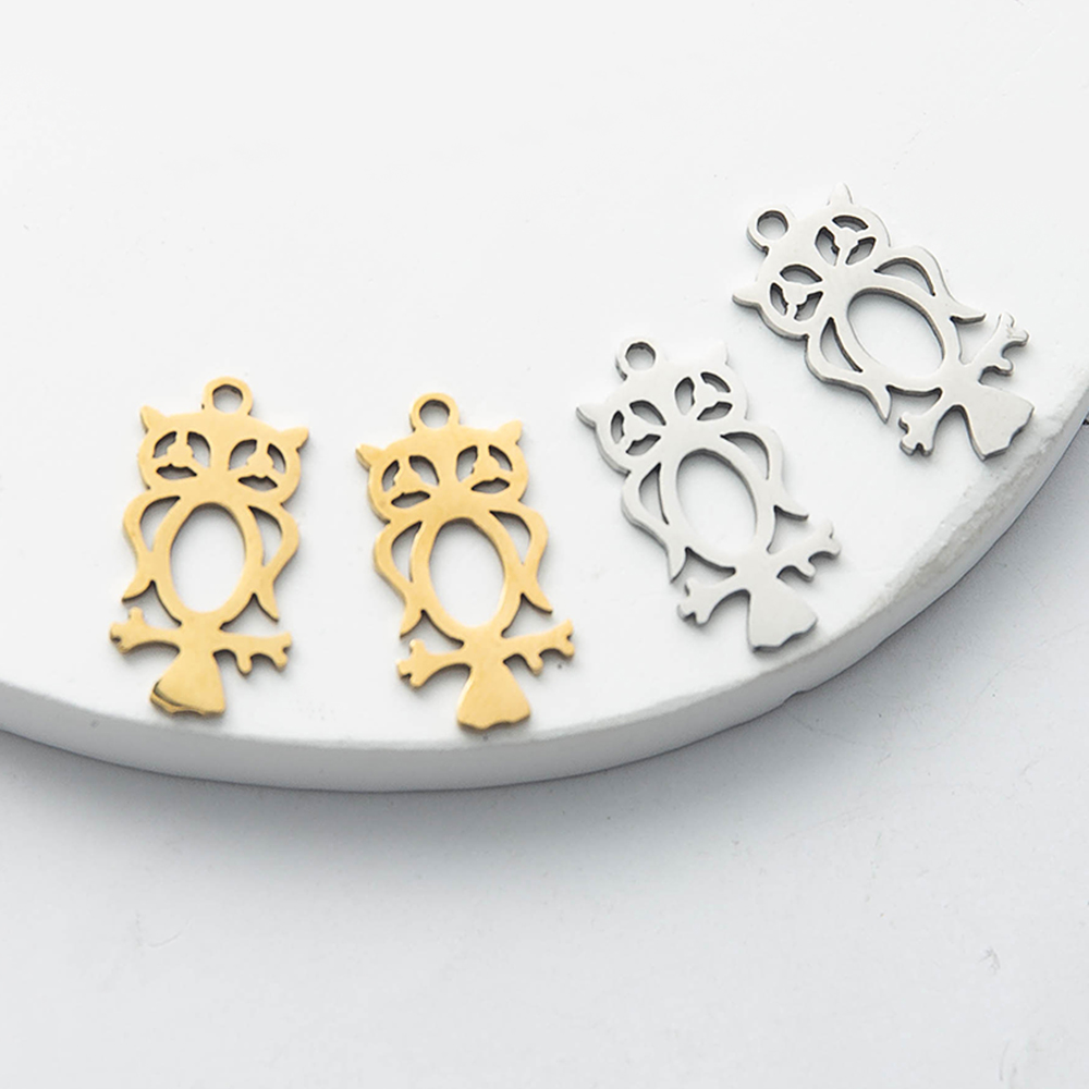 Pendentifs d'animaux en acier inoxydable , Acier inoxydable 304, hibou, Placage, DIY, plus de couleurs à choisir, 9.36x0.93x18.38mm, Vendu par PC
