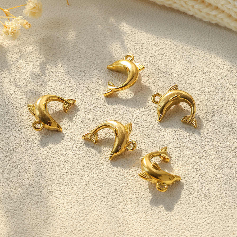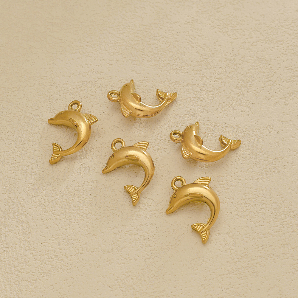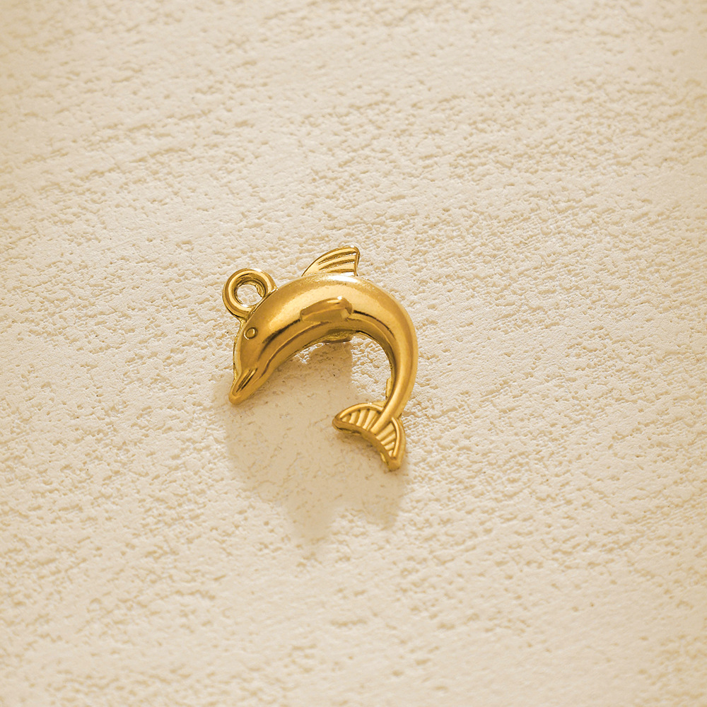 Pendentifs d'animaux en acier inoxydable , Acier inoxydable 304, dauphin, Placage de couleur d'or, DIY, Vendu par PC