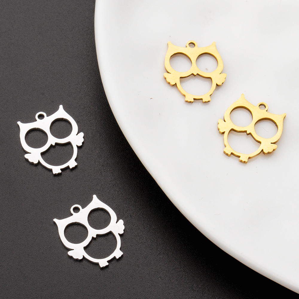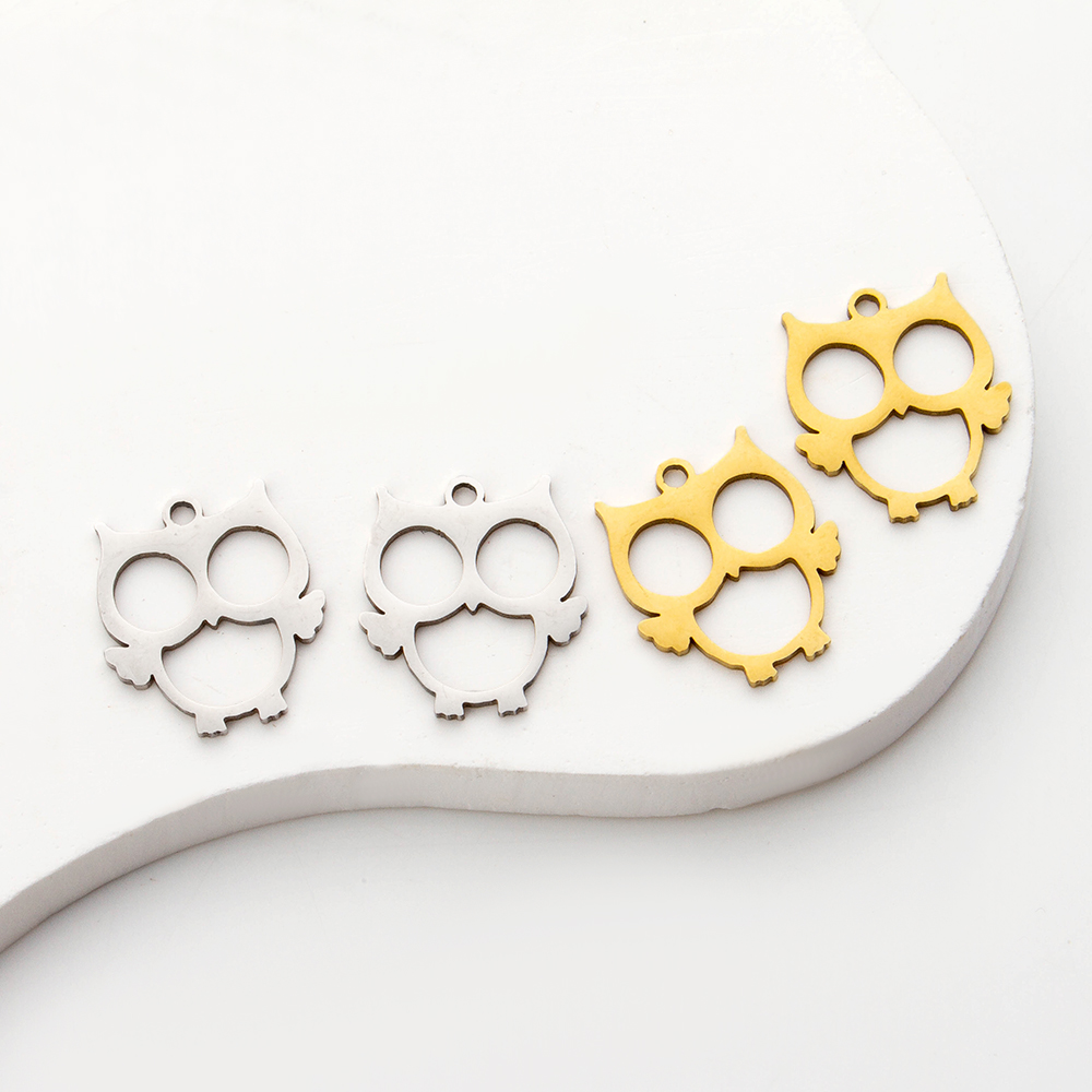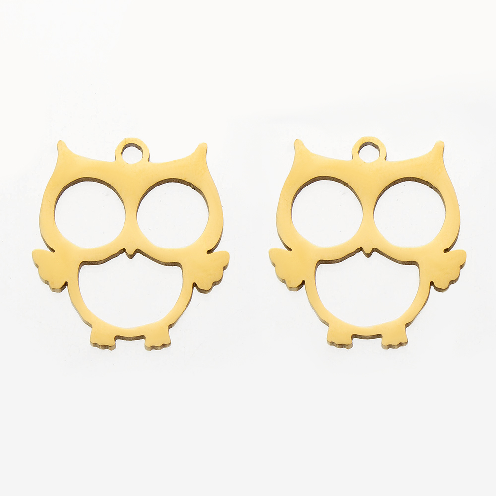 Pendentifs d'animaux en acier inoxydable , 201 acier inoxydable, hibou, Placage, DIY, plus de couleurs à choisir, 14.5x1x16.2mm, Vendu par PC