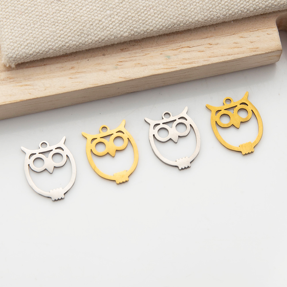 Pendentifs d'animaux en acier inoxydable , 201 acier inoxydable, hibou, Placage, DIY, plus de couleurs à choisir, 13x0.9x16mm, Vendu par PC