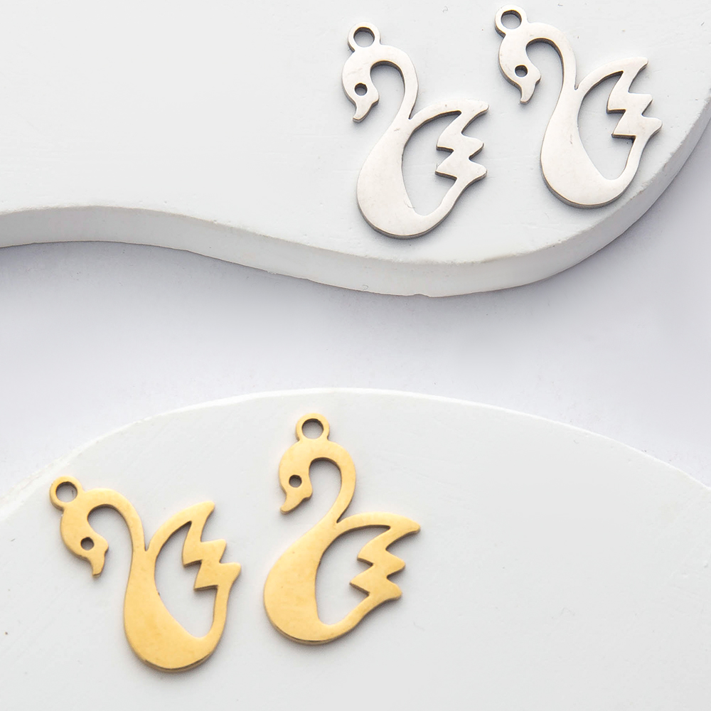 Pendentifs d'animaux en acier inoxydable , 201 acier inoxydable, cygne, Placage, DIY, plus de couleurs à choisir, 12.5x0.9x18mm, Vendu par PC