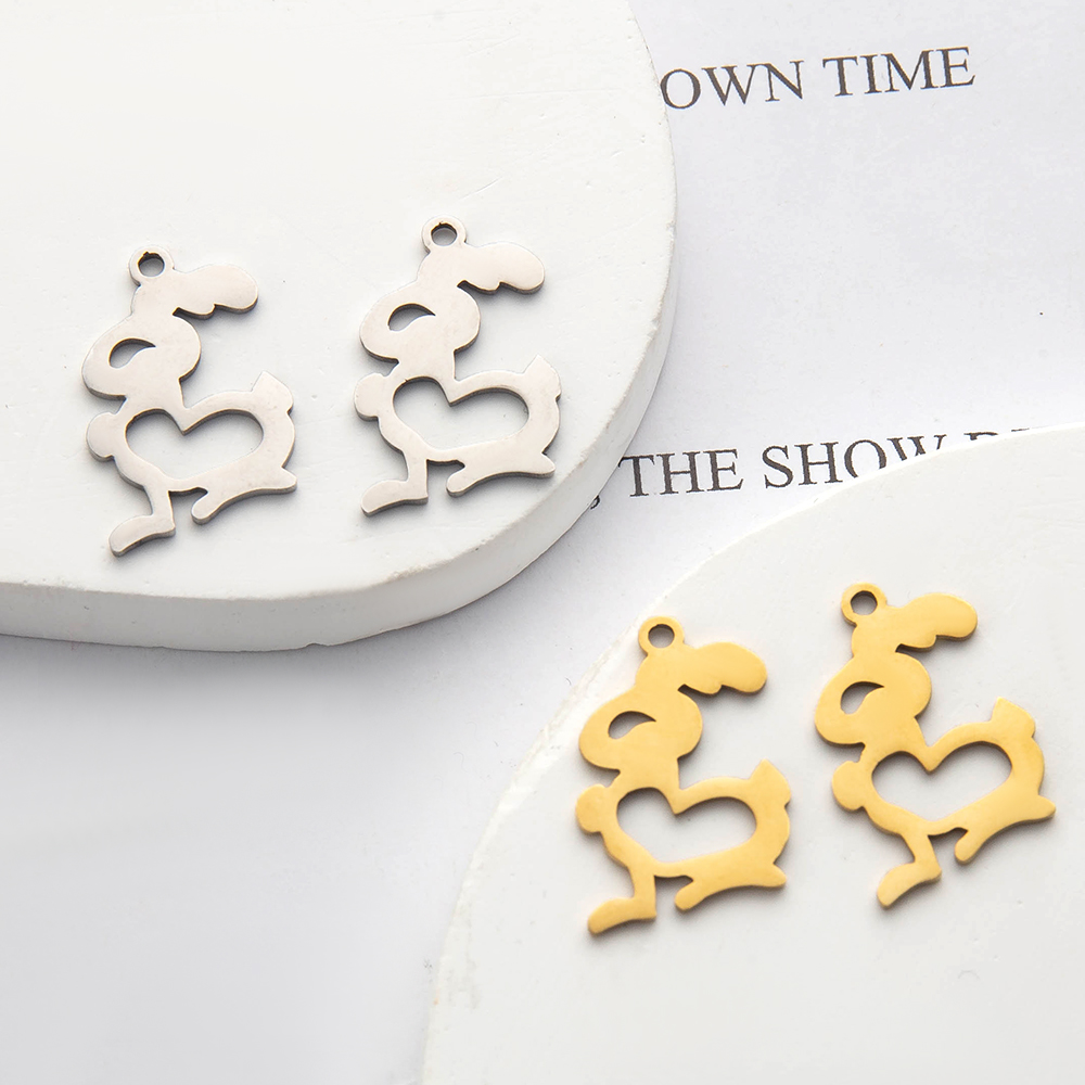 Pendentifs d'animaux en acier inoxydable , 201 acier inoxydable, lapin, Placage, DIY, plus de couleurs à choisir, 12.3x0.9x17.7mm, Vendu par PC