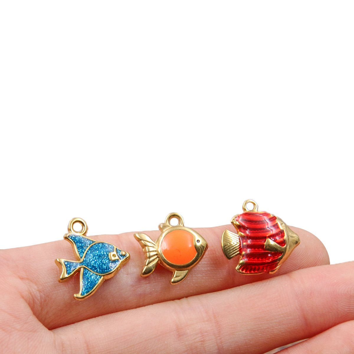 Pendentifs d'animaux en acier inoxydable , Acier inoxydable 304, poisson, Placage ionique sous vide, DIY & normes différentes pour le choix & émail, plus de couleurs à choisir, 10PC/sac, Vendu par sac