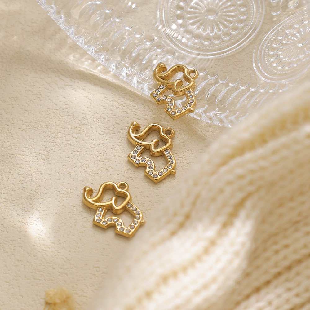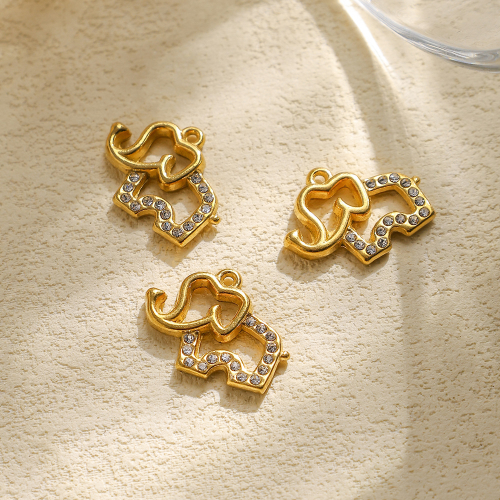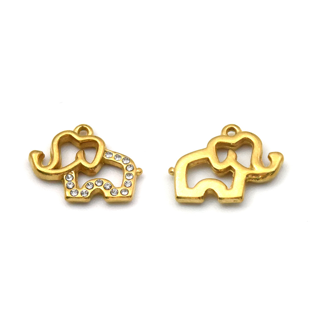 Pendentifs d'animaux en acier inoxydable , Acier inoxydable 304, éléphant, Placage de couleur d'or, DIY & avec strass, Vendu par PC