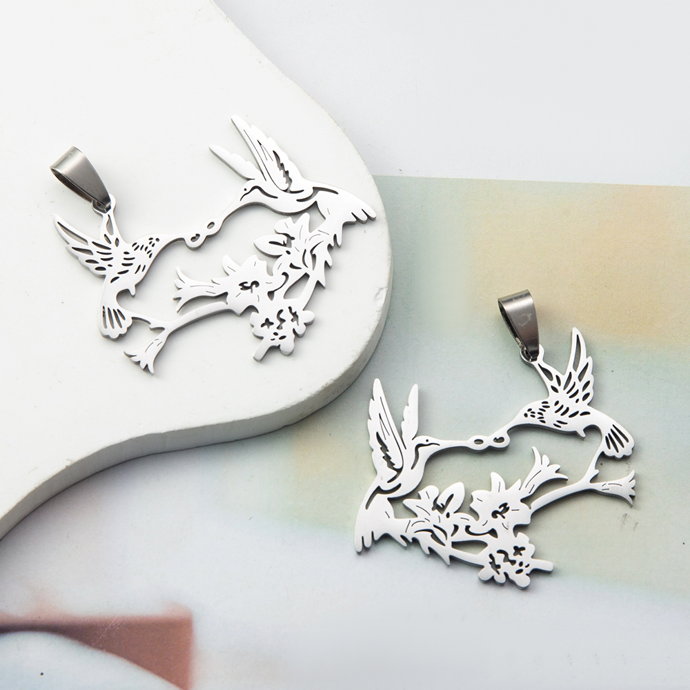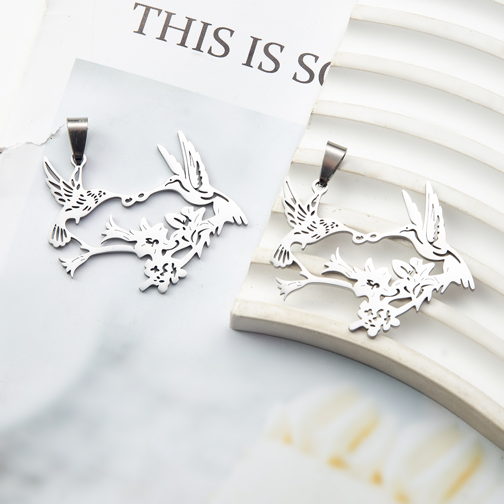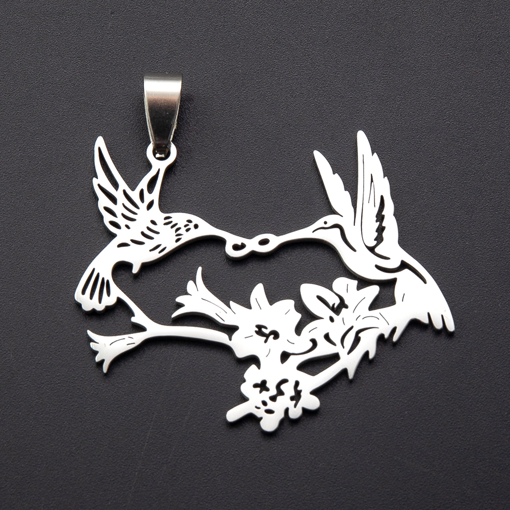 Pendentifs d'animaux en acier inoxydable , Acier inoxydable 304, oiseau, Placage de couleur argentée, DIY, argent, 42.8x1.35x41mm, Vendu par PC
