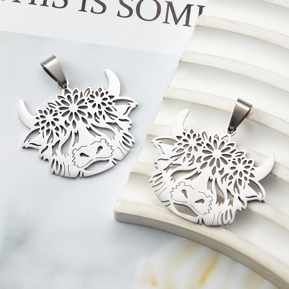 Pendentifs d'animaux en acier inoxydable , Acier inoxydable 304, mouton, Placage de couleur argentée, DIY, argent, 36.3x1.35x38.83mm, Vendu par PC