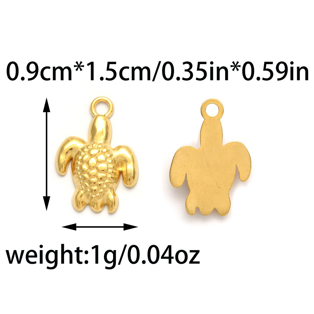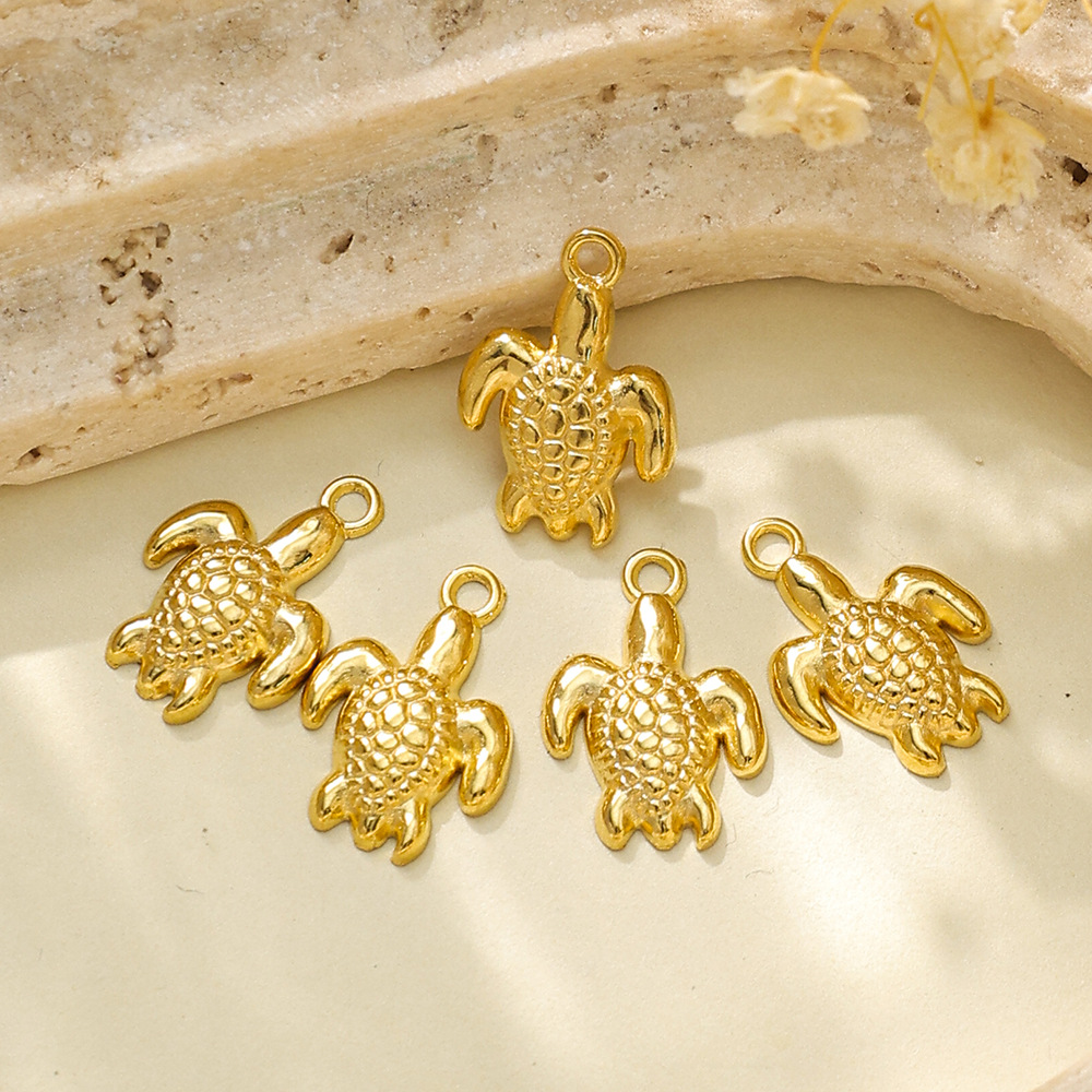 Pendentifs d'animaux en acier inoxydable , Acier inoxydable 304, tortue, Placage de couleur d'or, DIY, doré, 10PC/sac, Vendu par sac