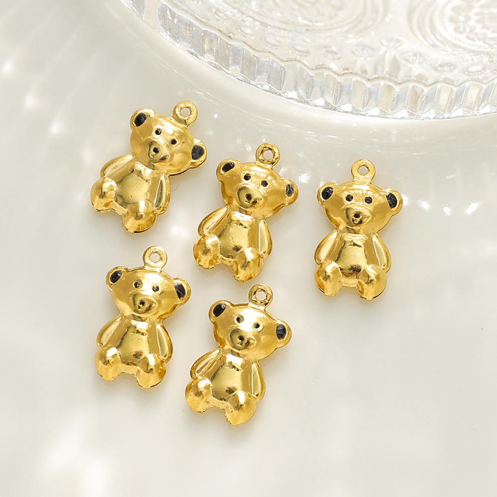 Pendentifs d'animaux en acier inoxydable , Acier inoxydable 304, ours, Placage de couleur d'or, DIY & émail, doré, 10PC/sac, Vendu par sac
