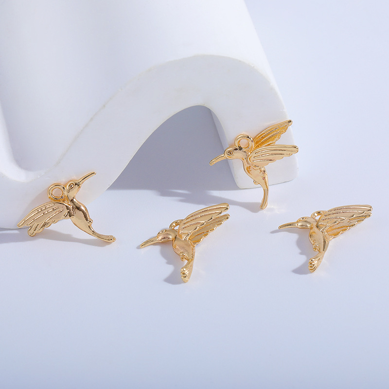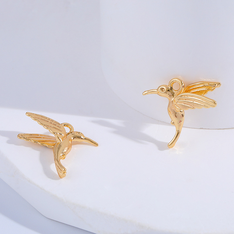 Pendentifs d'animaux en laiton, oiseau, Placage de couleur d'or, DIY, 17.2x15.5mm, 10PC/sac, Vendu par sac