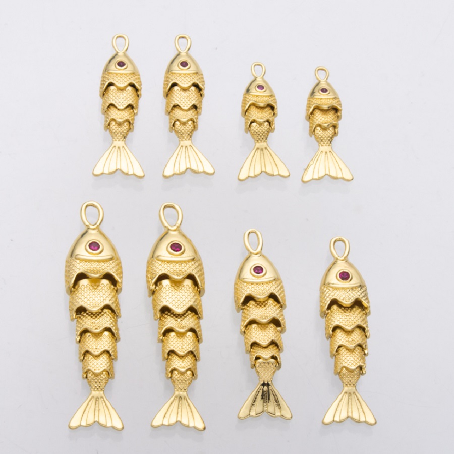 Pendentifs d'animaux en laiton, poisson, Placage de couleur d'or, DIY & normes différentes pour le choix, Vendu par PC