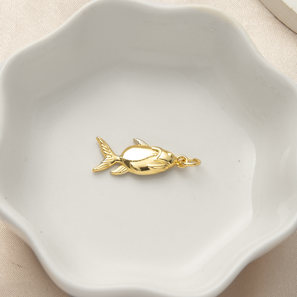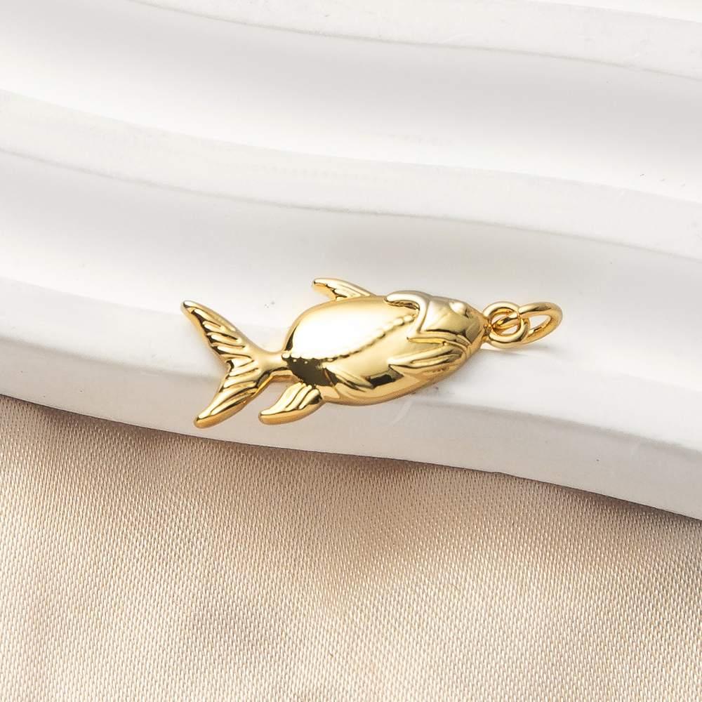 Pendentifs d'animaux en laiton, poisson, Placage de couleur d'or, DIY, 24.7x3x9mm, Vendu par PC