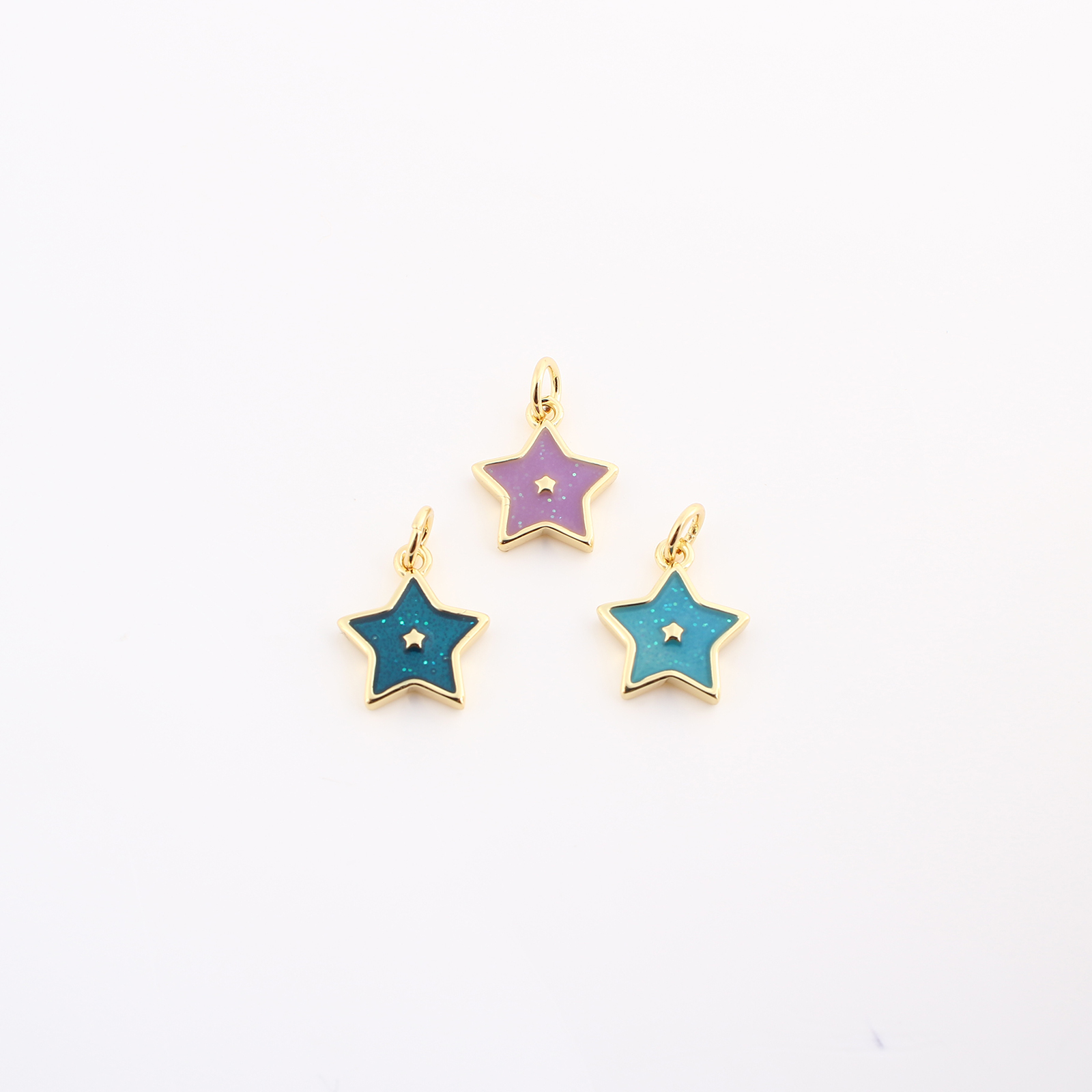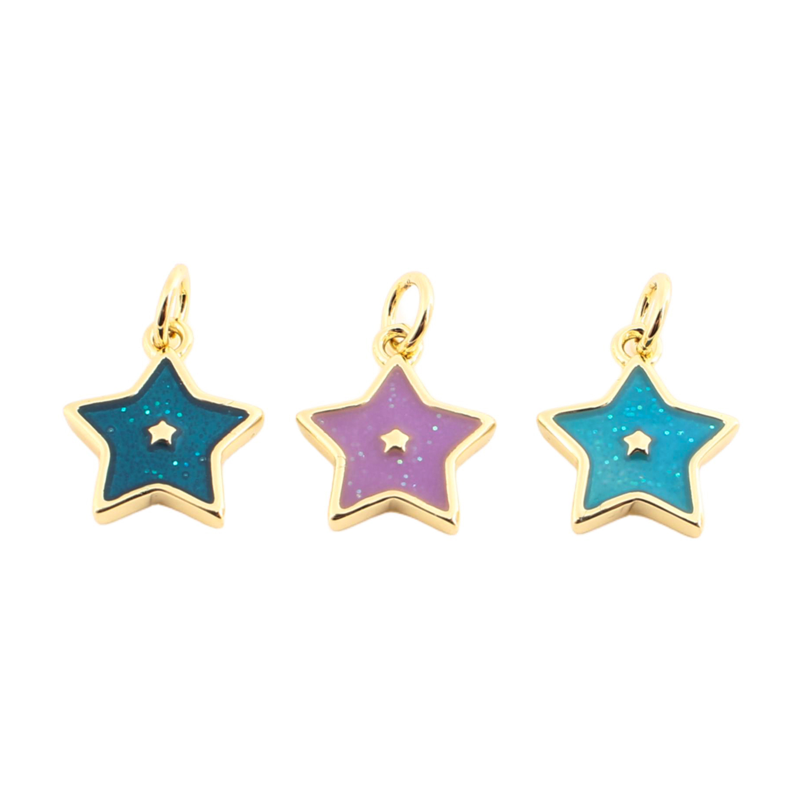 Pendentifs de Émail laiton , étoile, Placage de couleur d'or, DIY & émail, plus de couleurs à choisir, 13x11x2mm, Vendu par PC