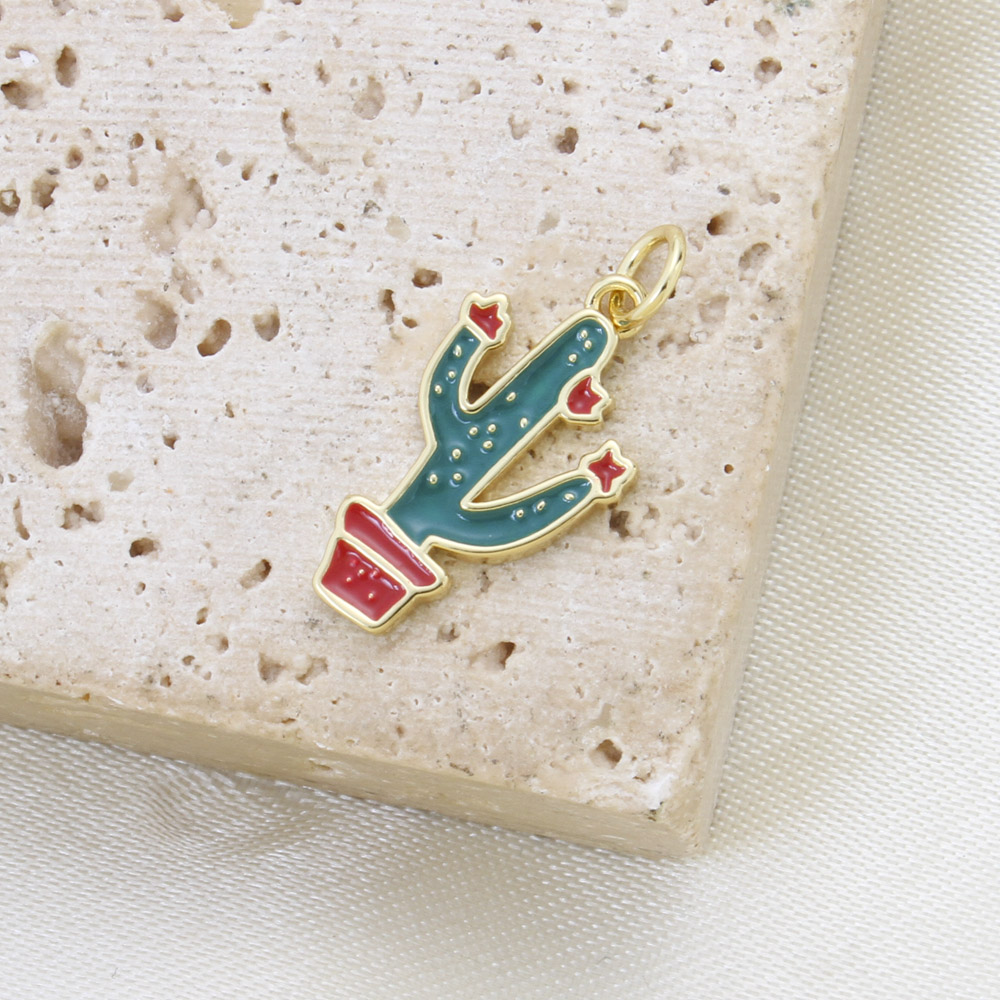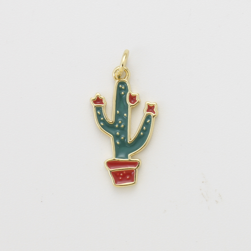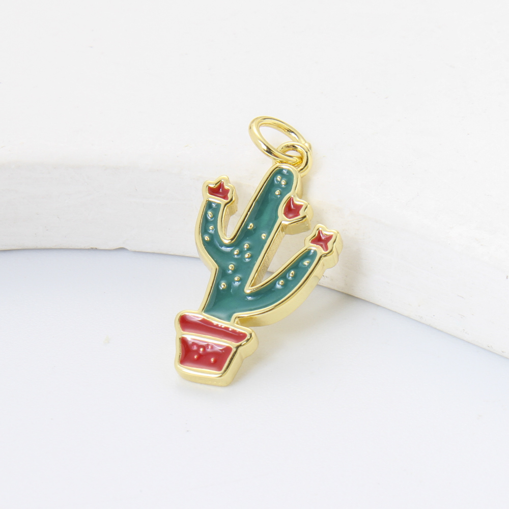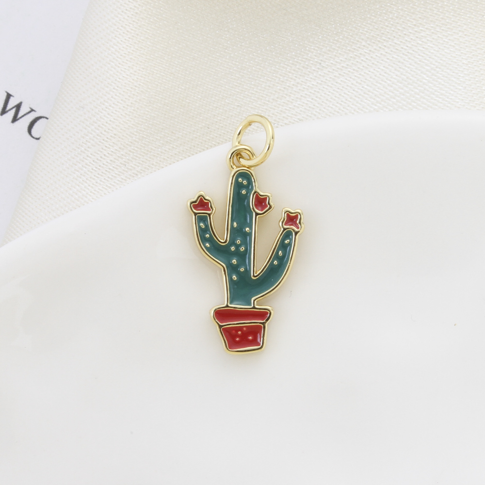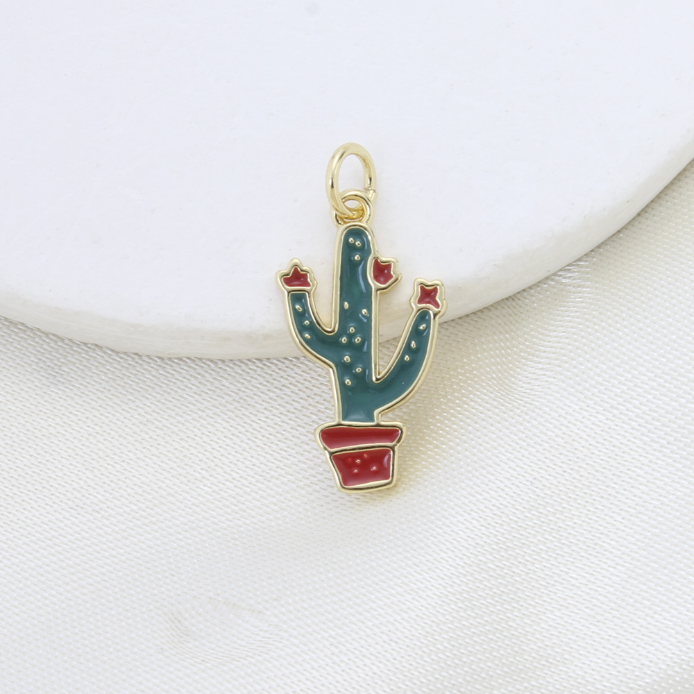 Pendentifs de Émail laiton , Opuntia Stricta, Placage, DIY & émail, plus de couleurs à choisir, 17.4x11x1.8mm, Vendu par PC