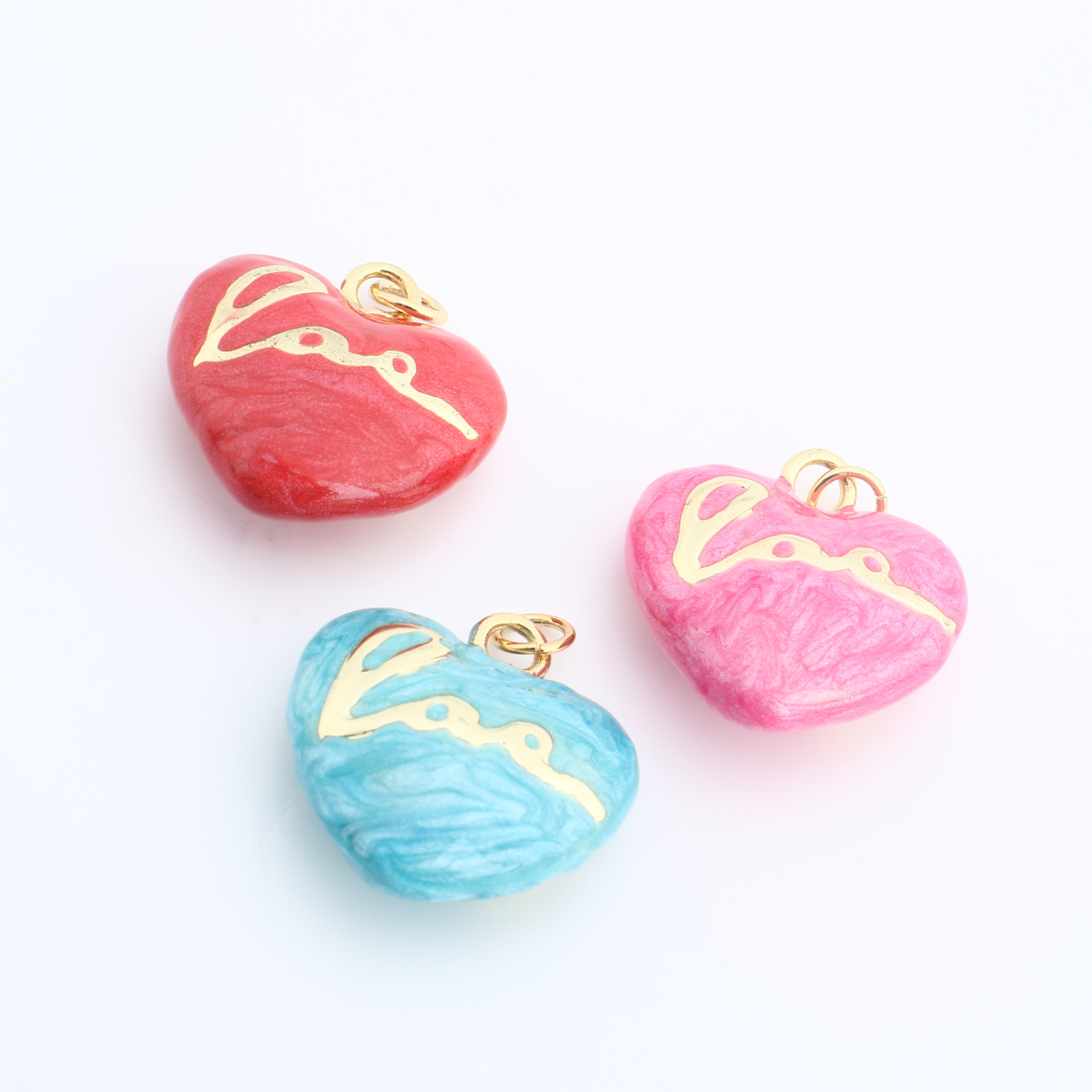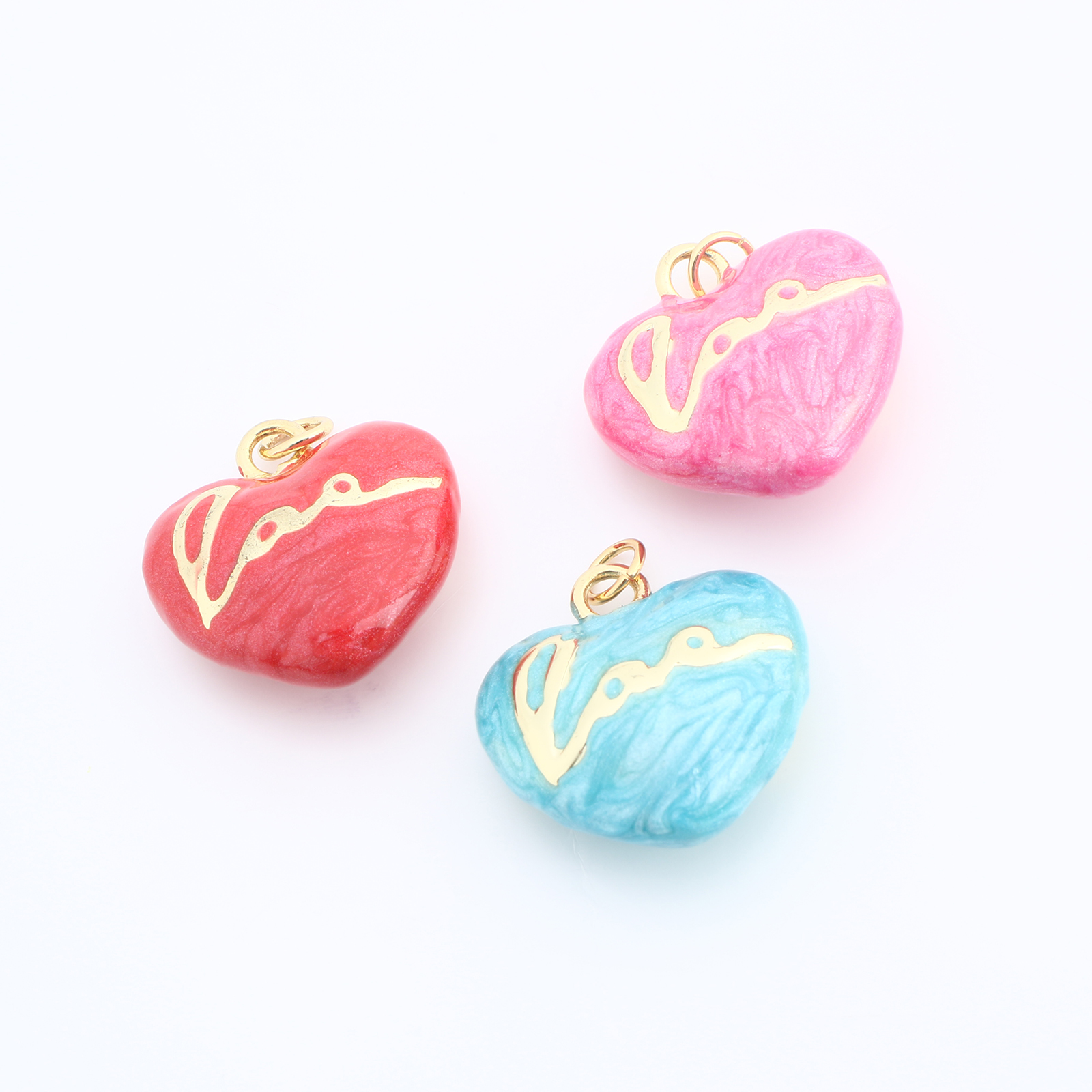 Pendentifs de Émail laiton , coeur, Placage de couleur d'or, émail, plus de couleurs à choisir Vendu par PC