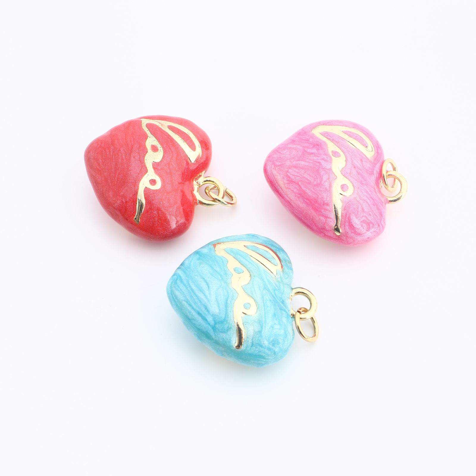 Pendentifs de Émail laiton , coeur, Placage de couleur d'or, DIY & émail, plus de couleurs à choisir, 21x21x9mm, Vendu par PC