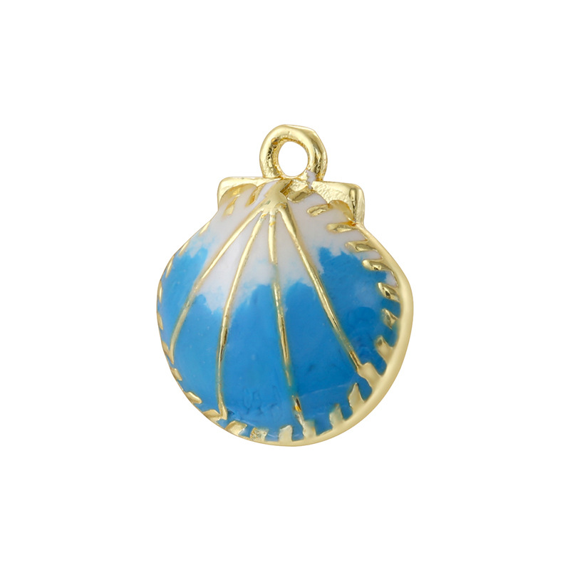 Pendentifs de Émail laiton , feuille, Placage de couleur d'or, émail, bleu Environ 2mm, Vendu par PC