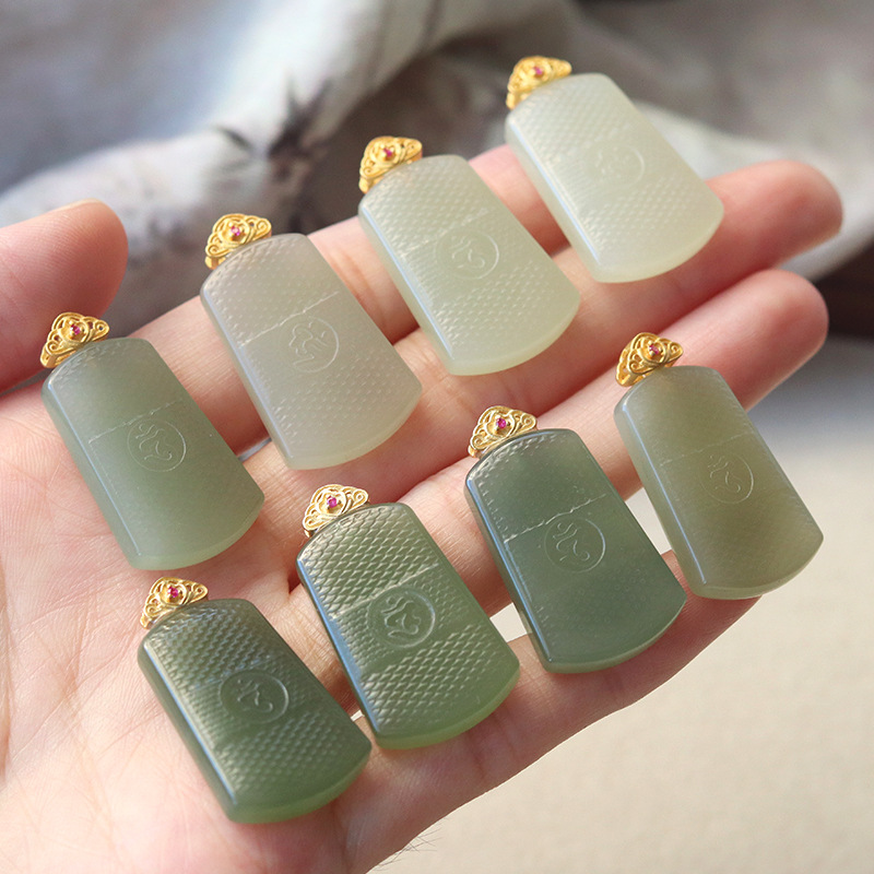 Pendentifs de Jade, Hetian Jade, avec Argent sterling 925, DIY & styles différents pour le choix, 17x31mm, Vendu par PC