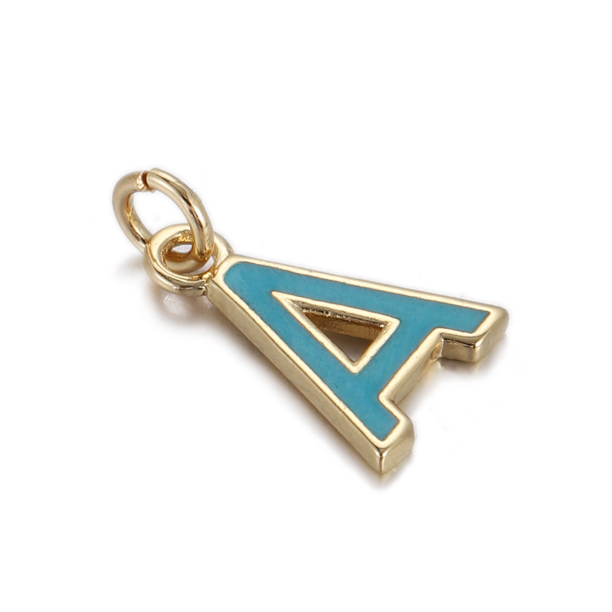 Pendentifs de Lettre laiton , Lettre d’alphabet, Placage de couleur d'or, DIY & émail, bleu, protéger l'environnement, sans nickel, plomb et cadmium, 3PC/sac, Vendu par sac