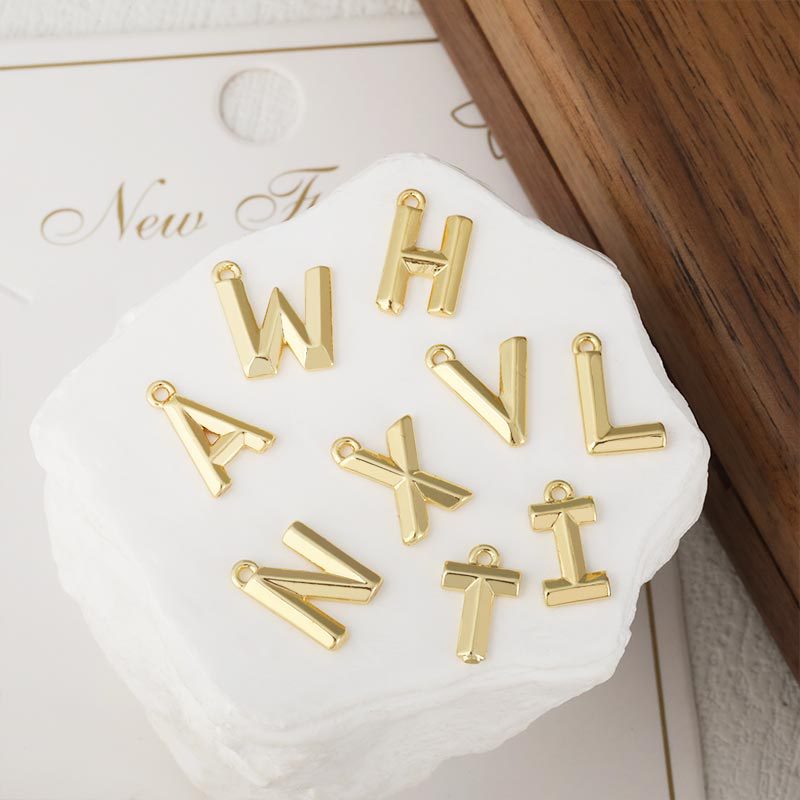 Pendentifs de Lettre laiton , Lettre d’alphabet, Plaqué d'or, protéger l'environnement, sans nickel, plomb et cadmium Environ 2mm, Vendu par PC