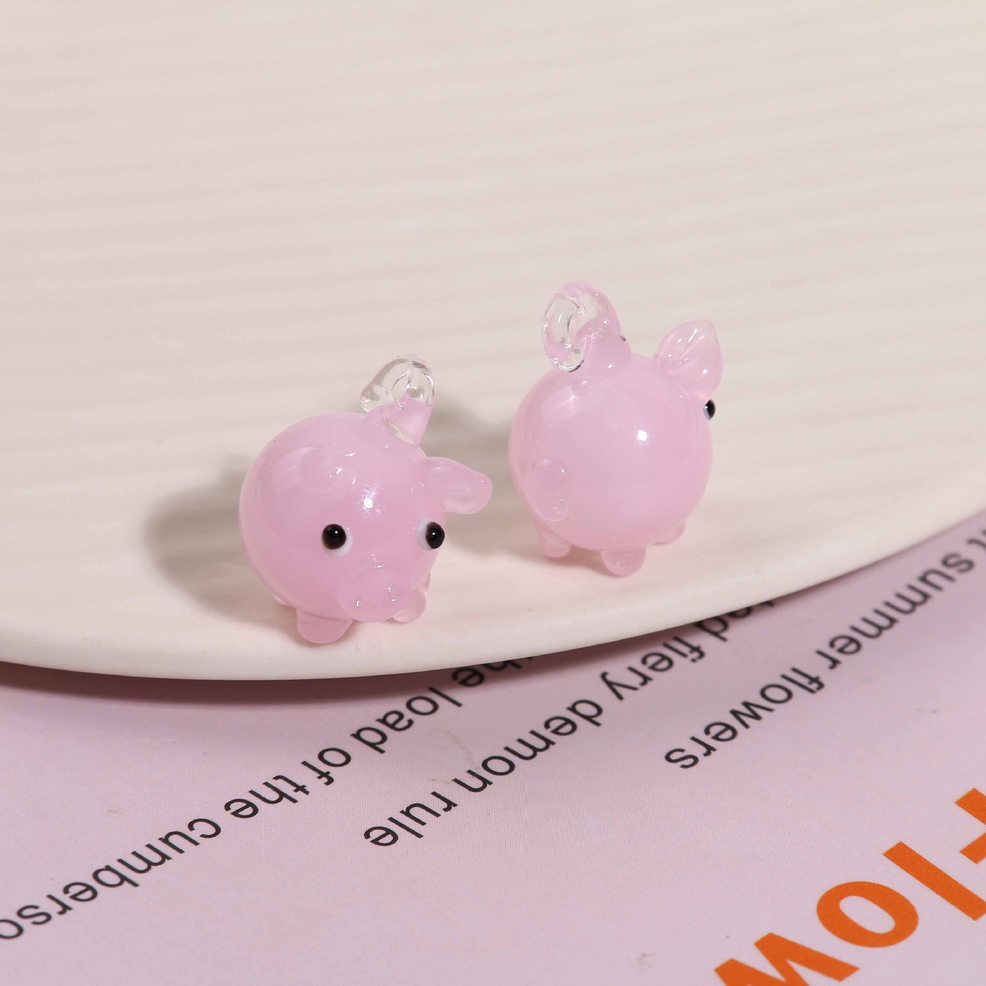 Pendentifs de Murano animaux , chalumeau, cochon, DIY, rose, 20x18mm, Vendu par PC