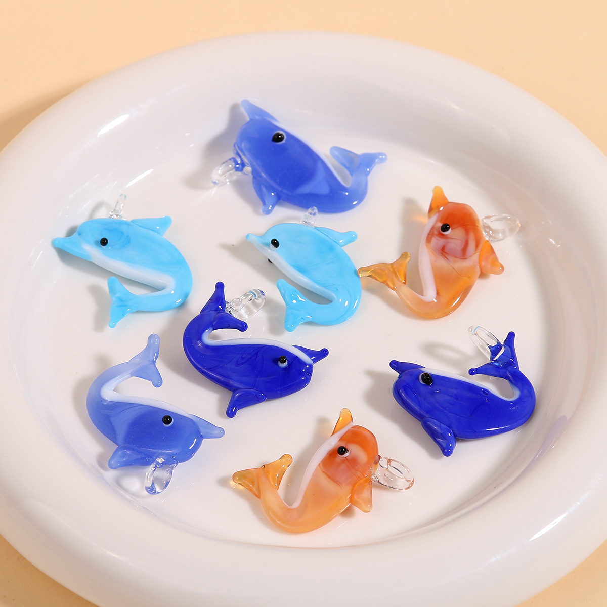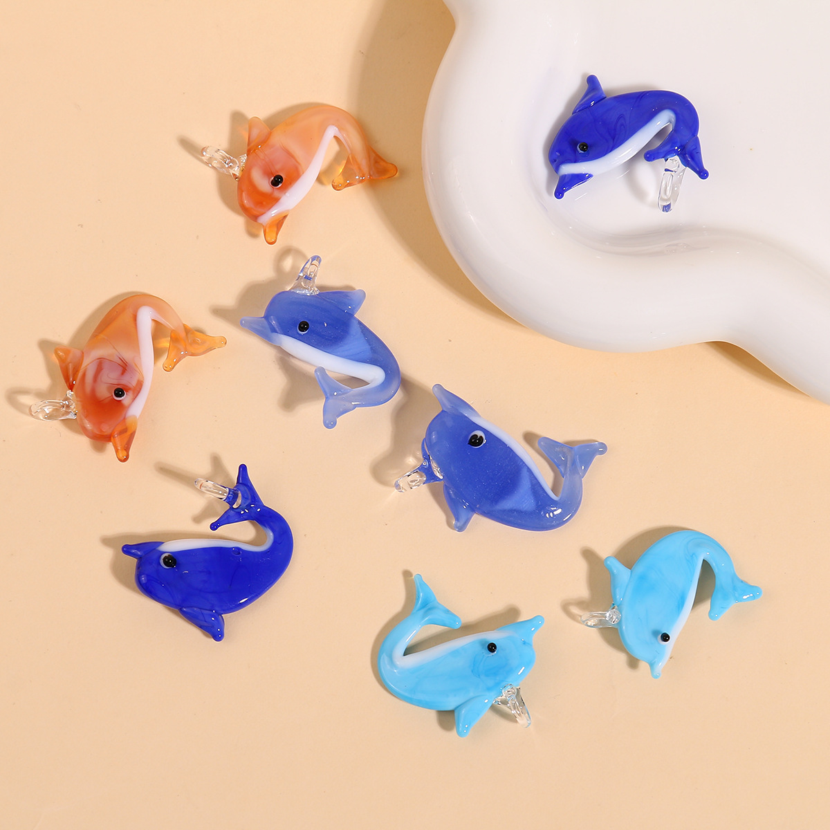 Pendentifs de Murano animaux , chalumeau, dauphin, plus de couleurs à choisir Environ 2mm, Vendu par PC