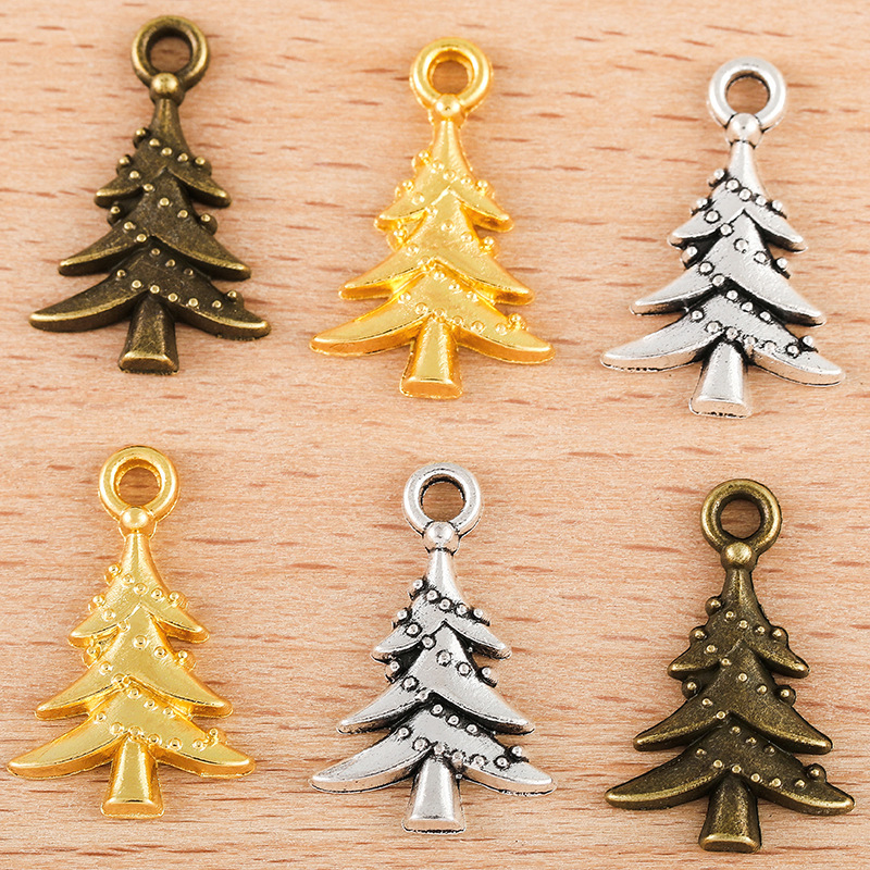 Pendentifs de Noël en alliage de zinc, arbre, Placage, DIY, plus de couleurs à choisir, 21x14mm, 100PC/sac, Vendu par sac