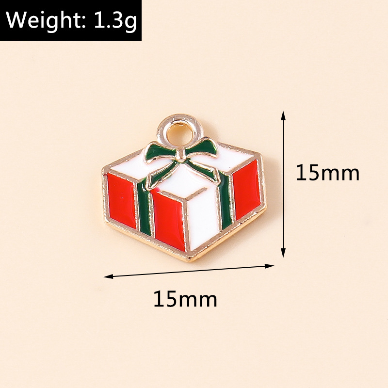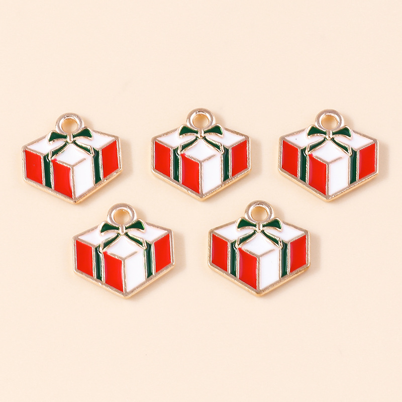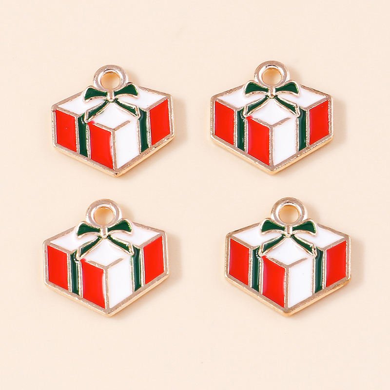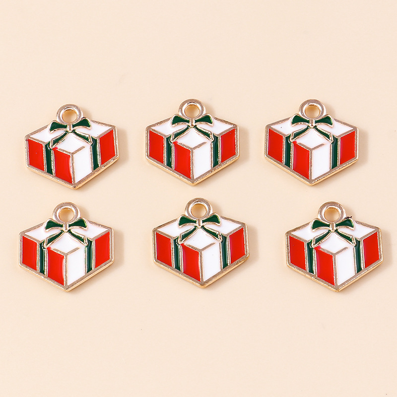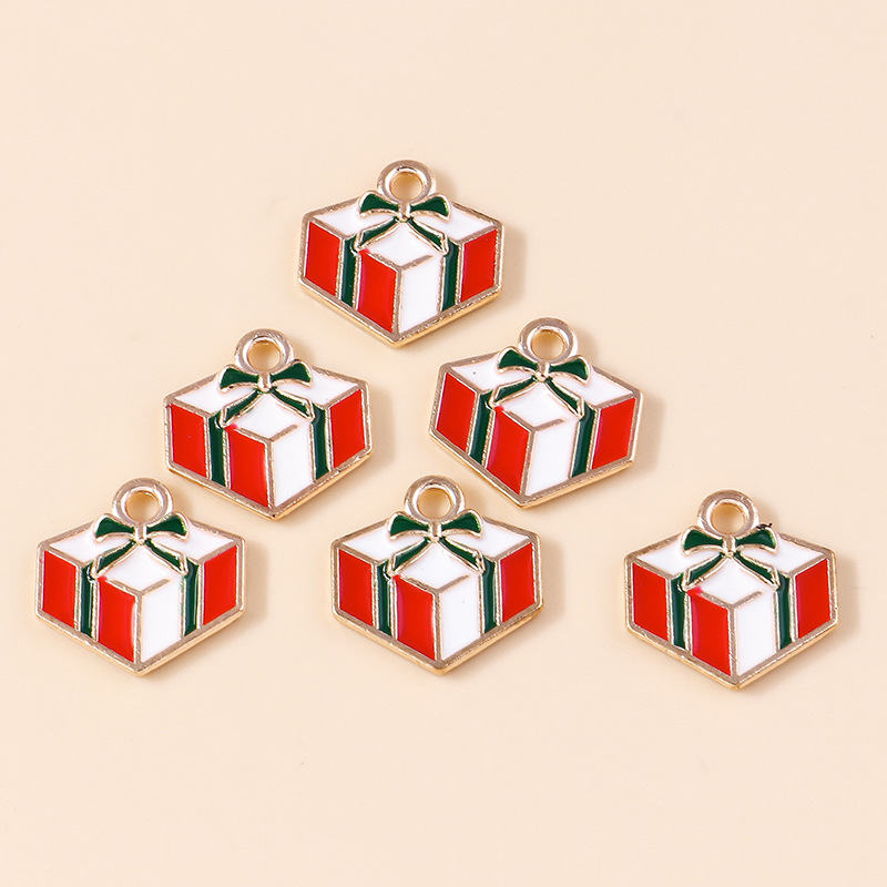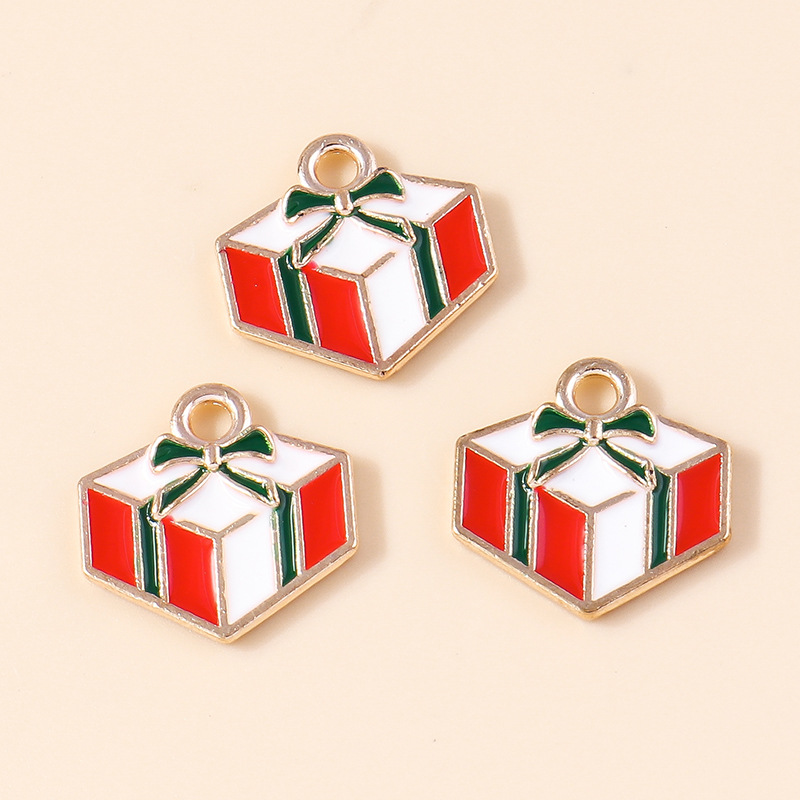 Pendentifs de Noël en alliage de zinc, En forme de boîte de cadeau, Placage, Conception de Noël & DIY & émail, 10PC/sac, Vendu par sac