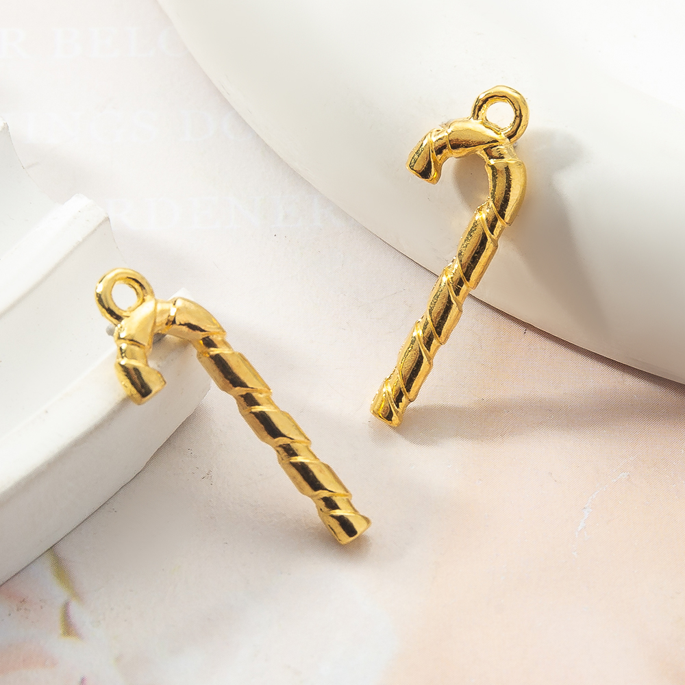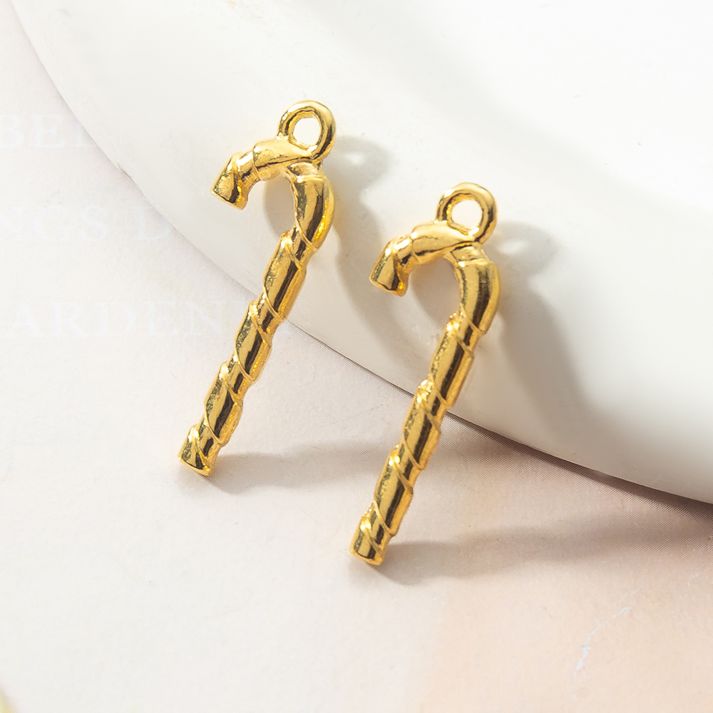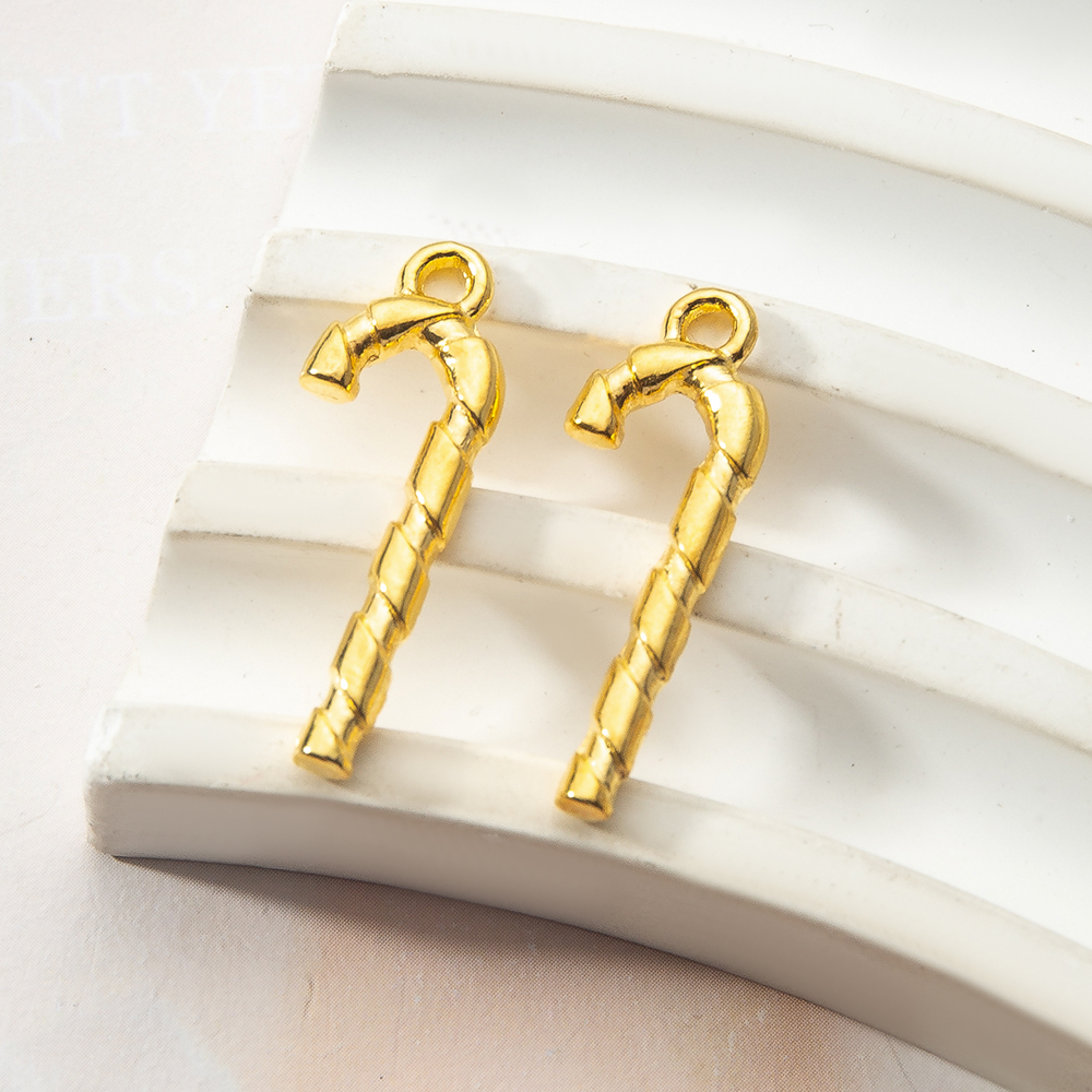 Pendentifs de Noël en alliage de zinc, canne à sucre de noël, Placage de couleur d'or, DIY, doré, 9.5x3x26.5mm, Vendu par sac