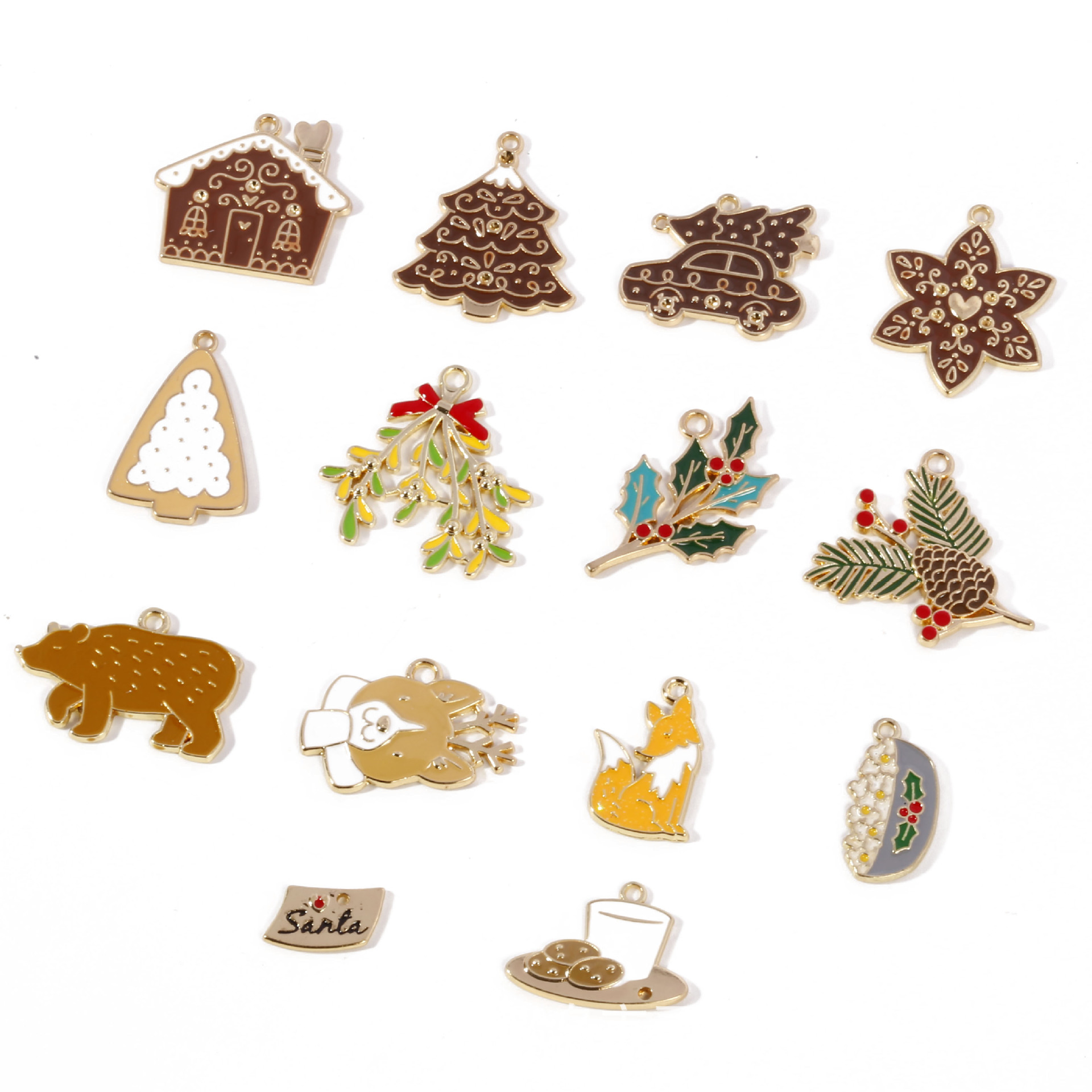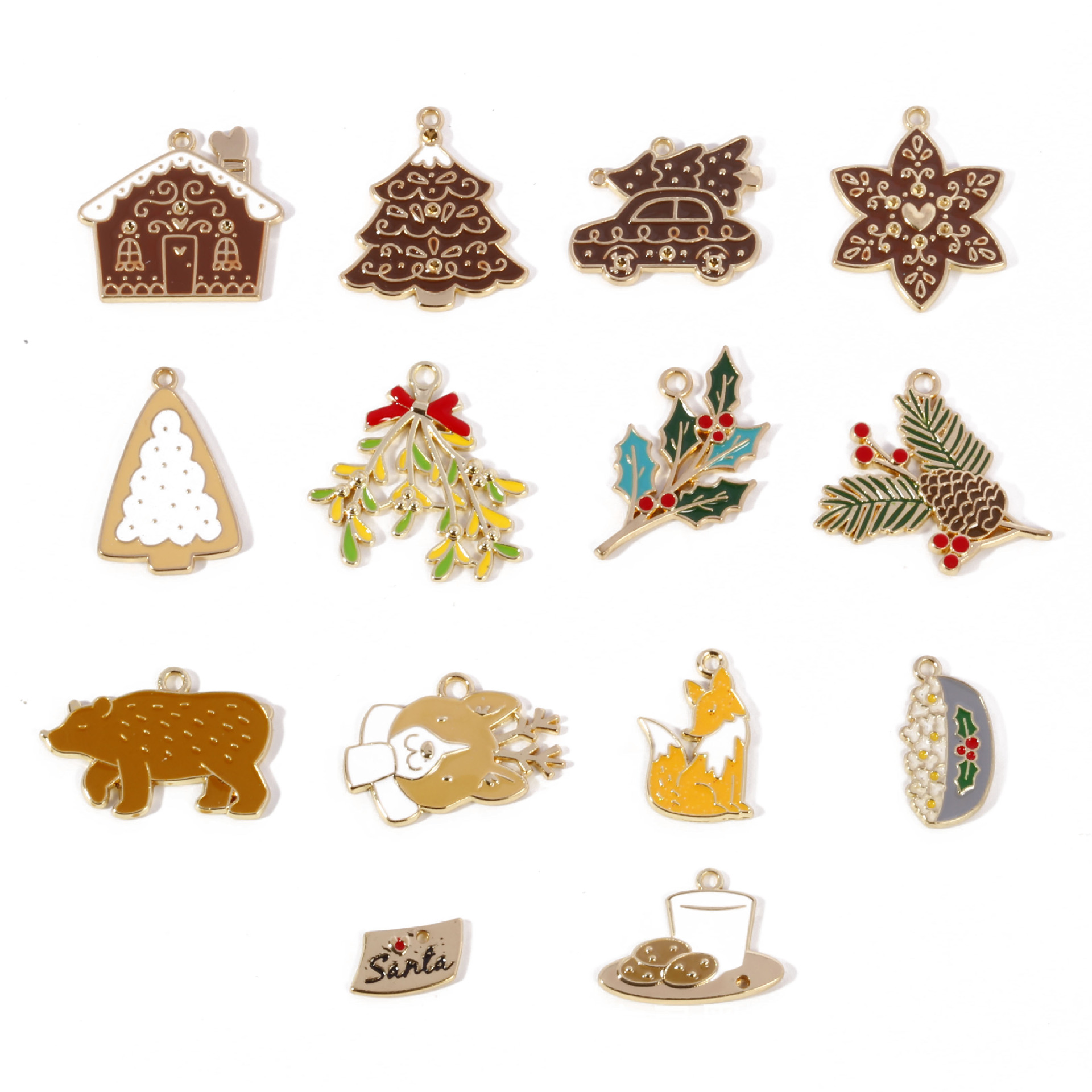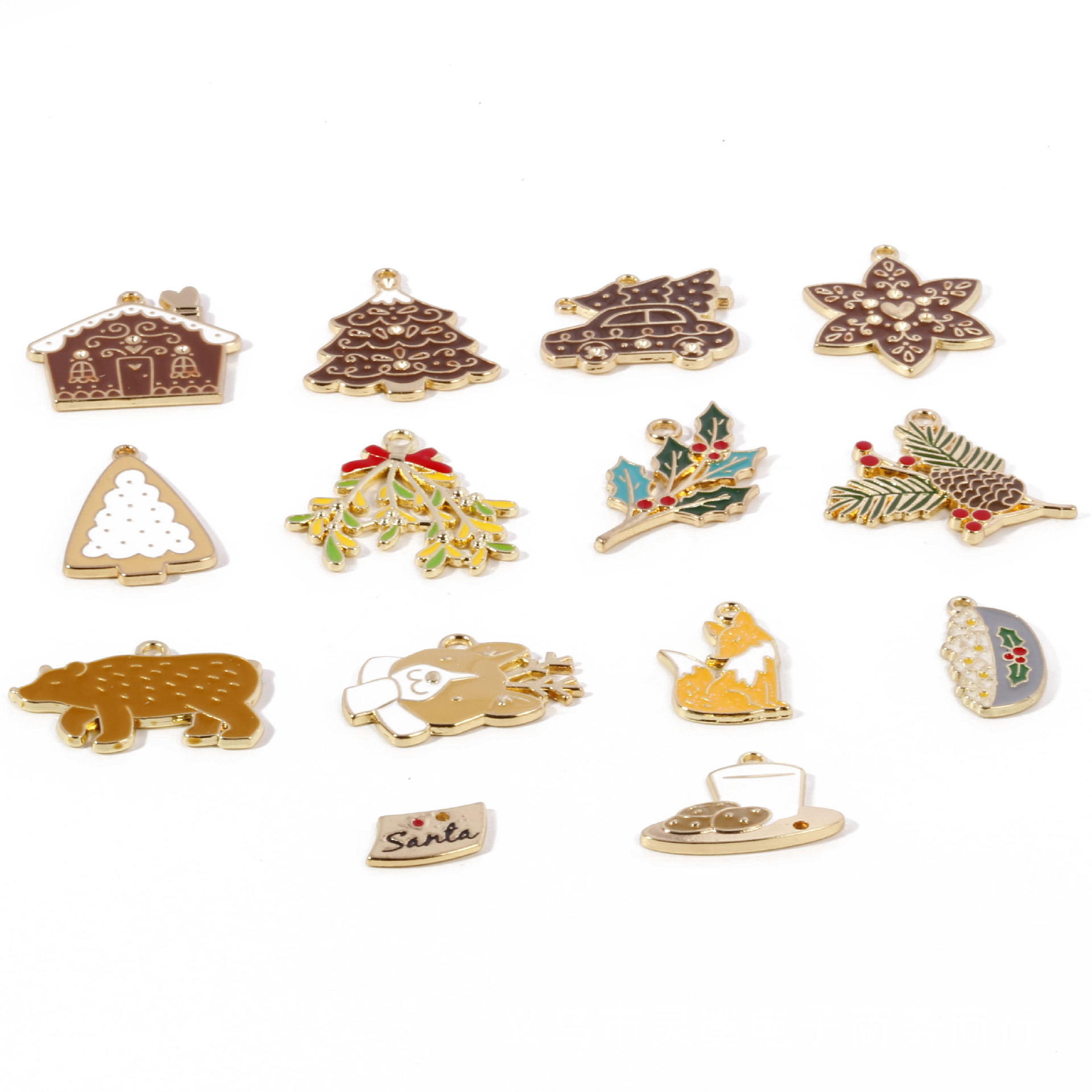 Pendentifs de Noël en alliage de zinc, Placage de couleur d'or, DIY & émail, plus de couleurs à choisir, 100PC/sac, Vendu par sac