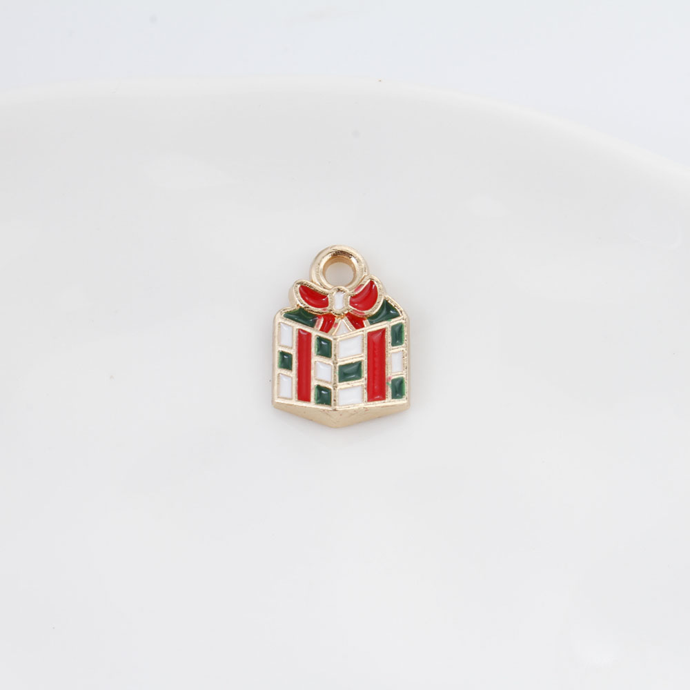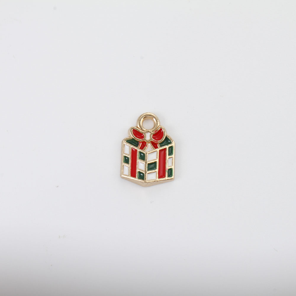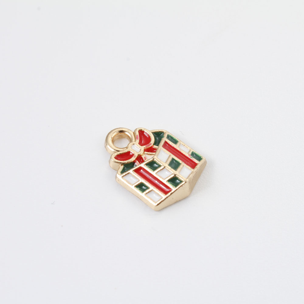 Pendentifs de Noël en alliage de zinc, En forme de boîte de cadeau, Placage de couleur d'or, Conception de Noël & DIY & émail, couleurs mélangées, 14x10x3.3mm, Vendu par PC