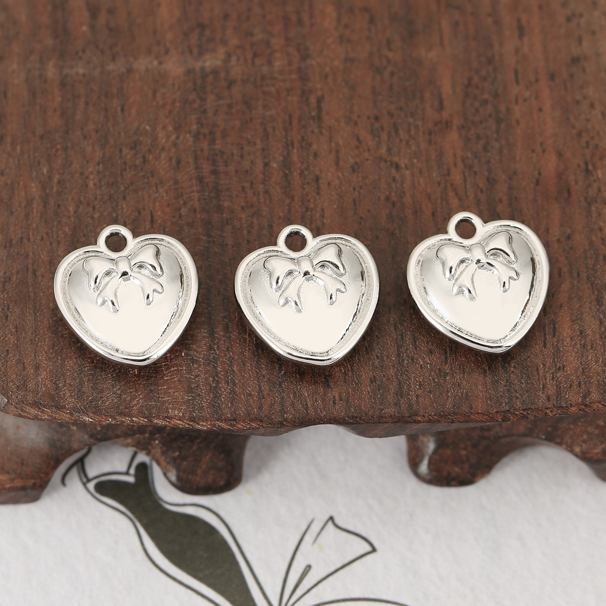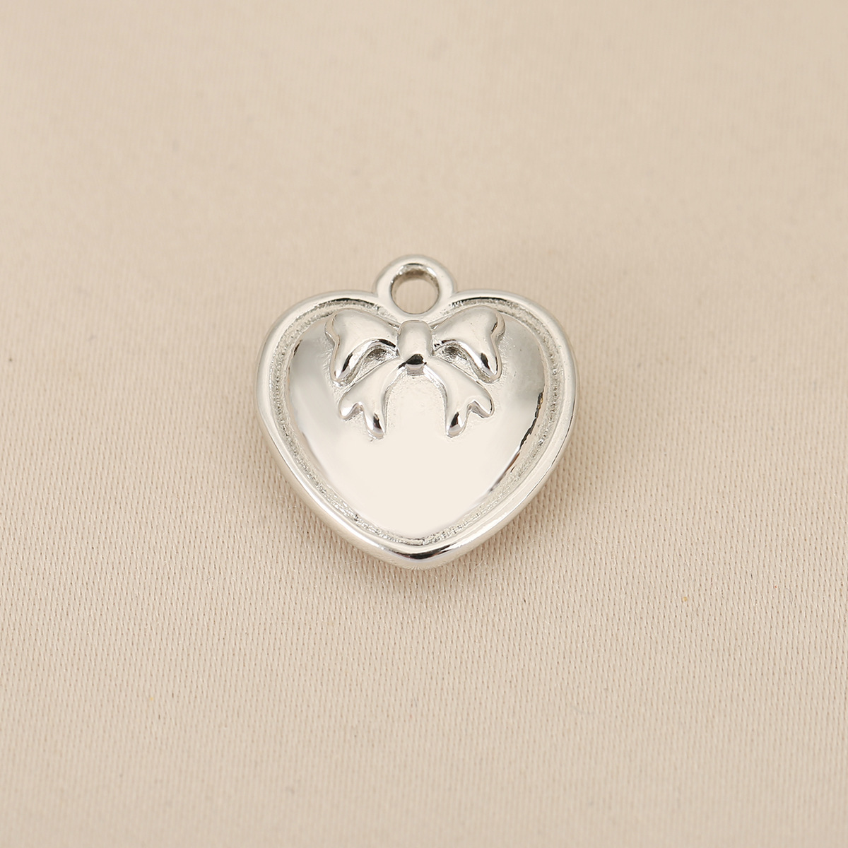 Pendentifs de coeur en laiton, Placage de couleur argentée, creux Vendu par PC