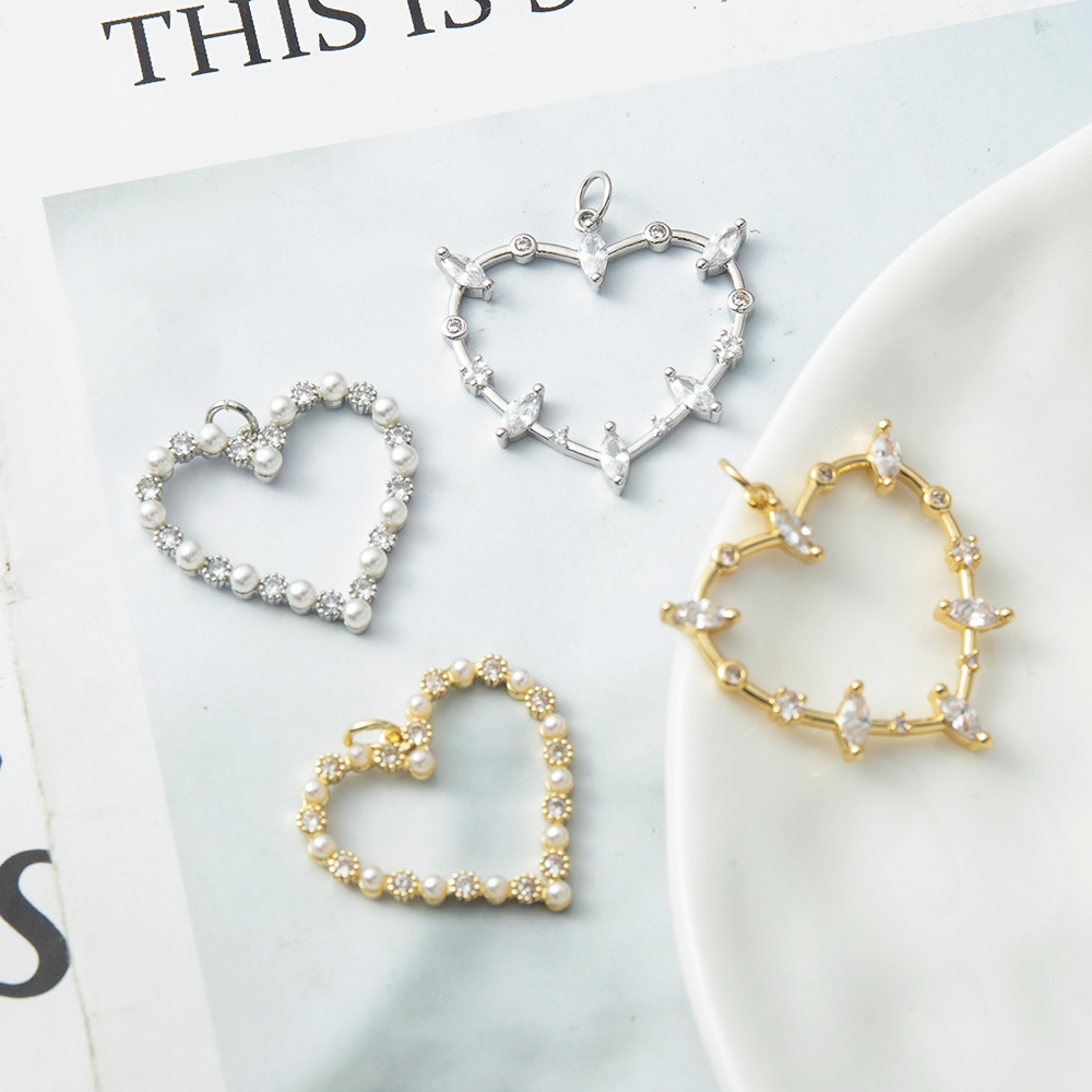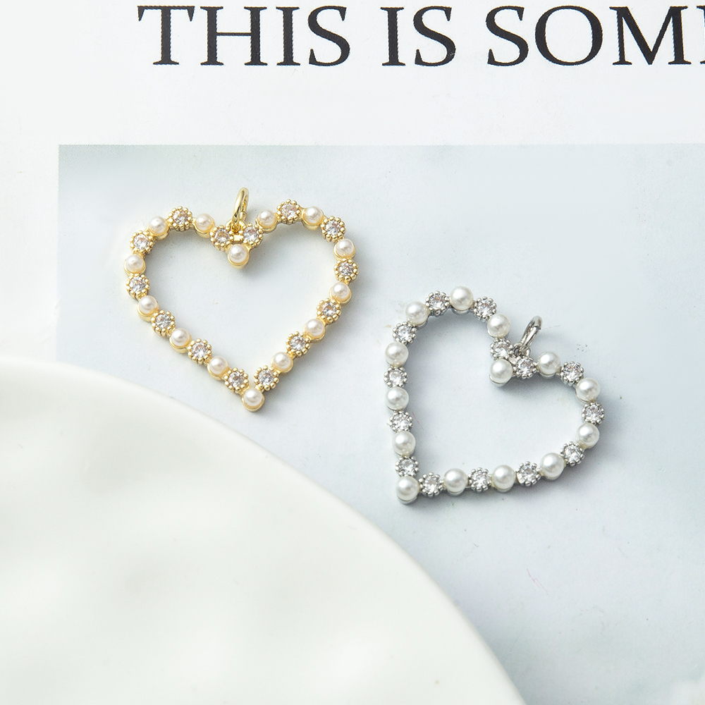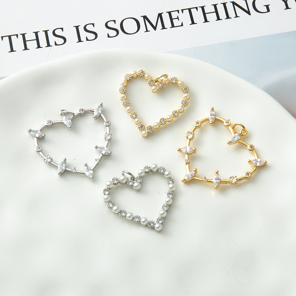 Pendentifs de coeur en laiton, avec perle de plastique, Placage, DIY & pavé de micro zircon, plus de couleurs à choisir, protéger l'environnement, sans nickel, plomb et cadmium, 27.8x3.2x32.5mm, Vendu par PC
