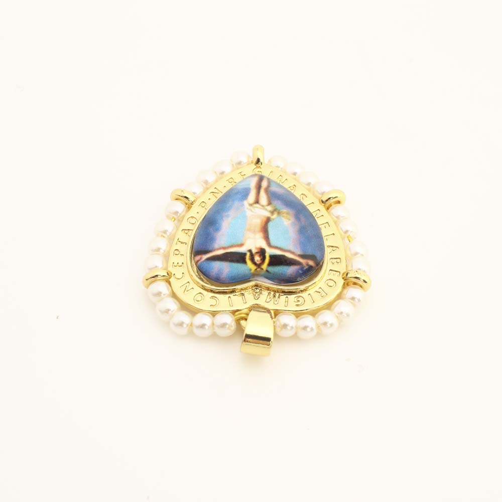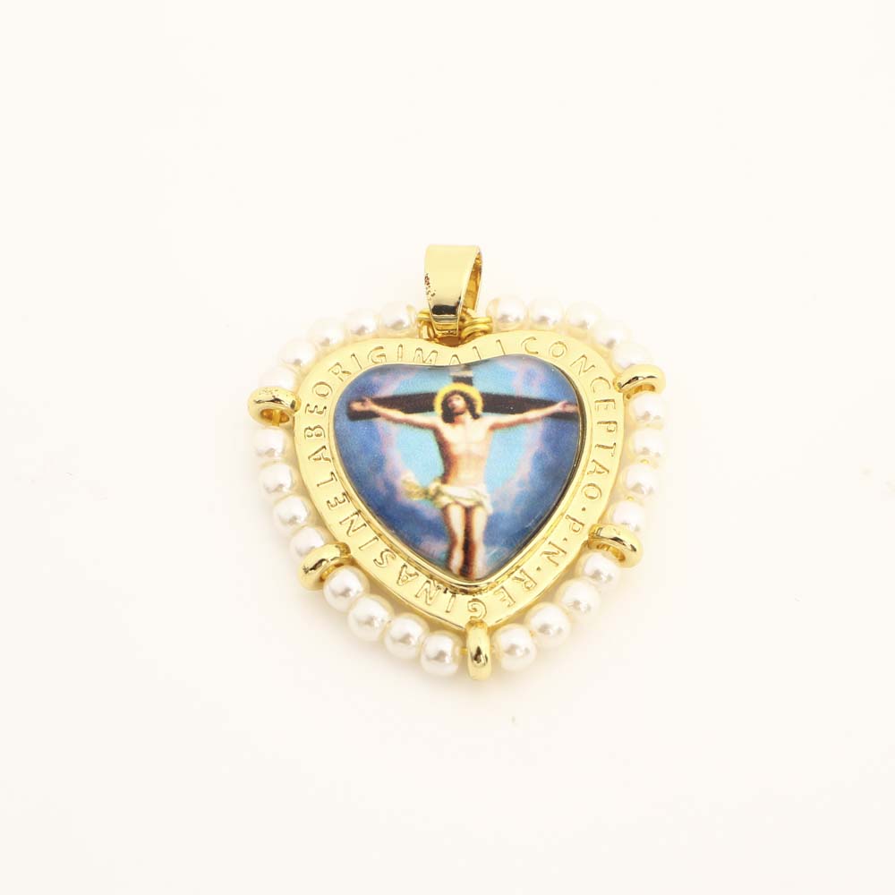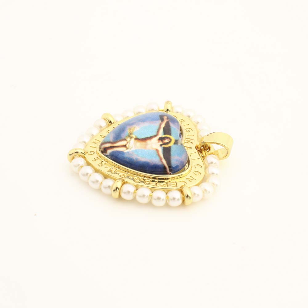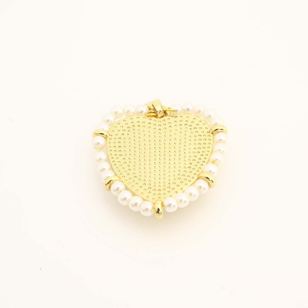 Pendentifs de coeur en laiton, avec plastique & perle de plastique, DIY, doré, Vendu par PC