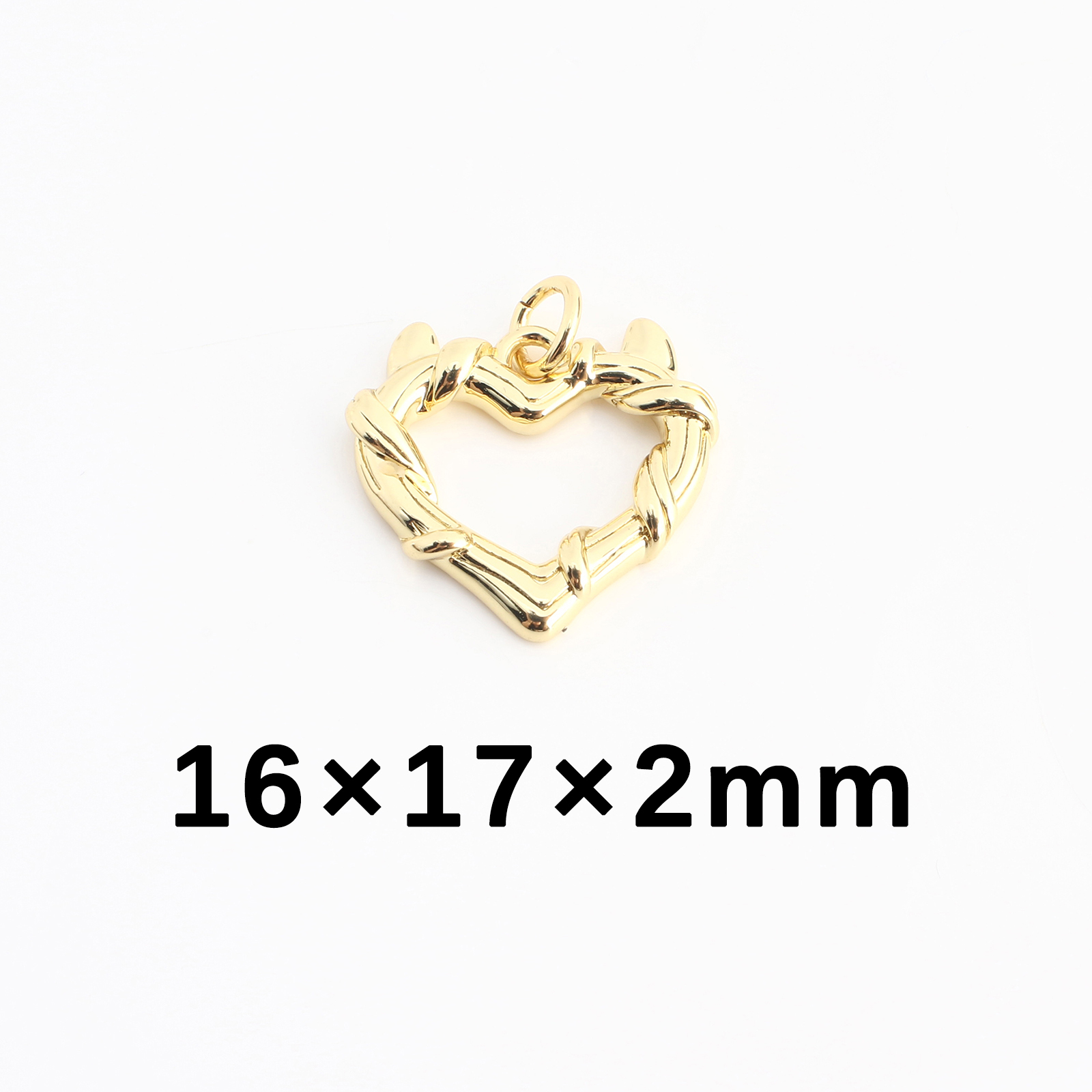 Pendentifs de coeur en laiton, DIY & creux, doré, 16x17x2mm, Vendu par PC